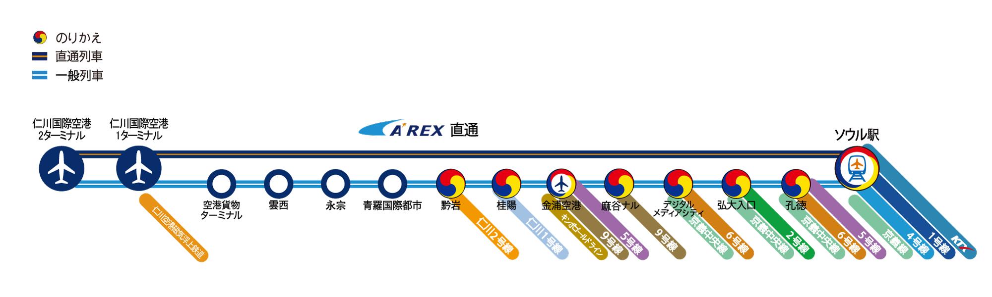 空港鉄道は大きく2つに分かれており、1つは各駅停車で、もう1つはソウル駅までの直通列車です