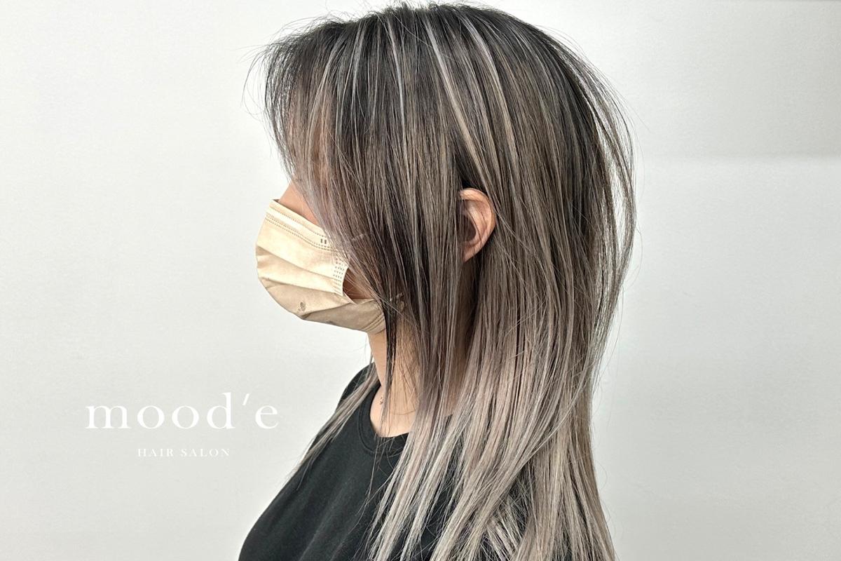 新龍山駅から徒歩2分の場所にある、オンブレとバレイヤージュのグラデーションカラーに特化したヘアサロン「mood'e」