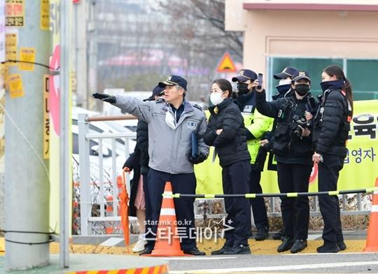 BTSジンの入隊現場を統制中の警察。漣川=カン·ヨングク記者