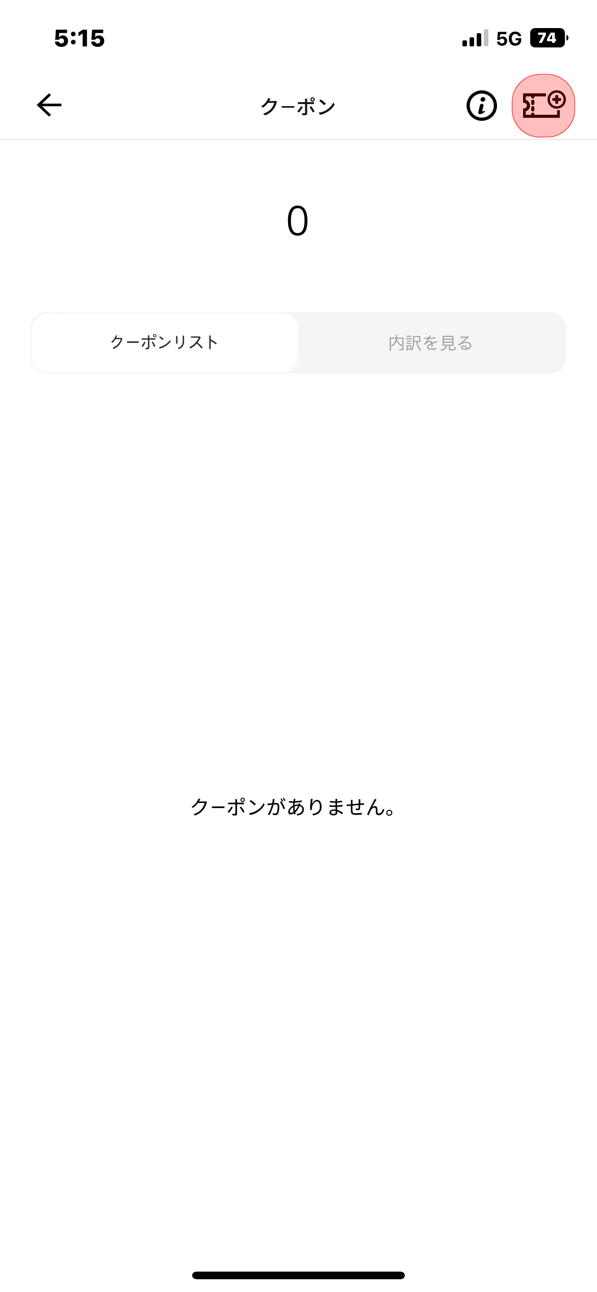 Step 2 | ホーム画面中央の [クーポン] を選択します。 |