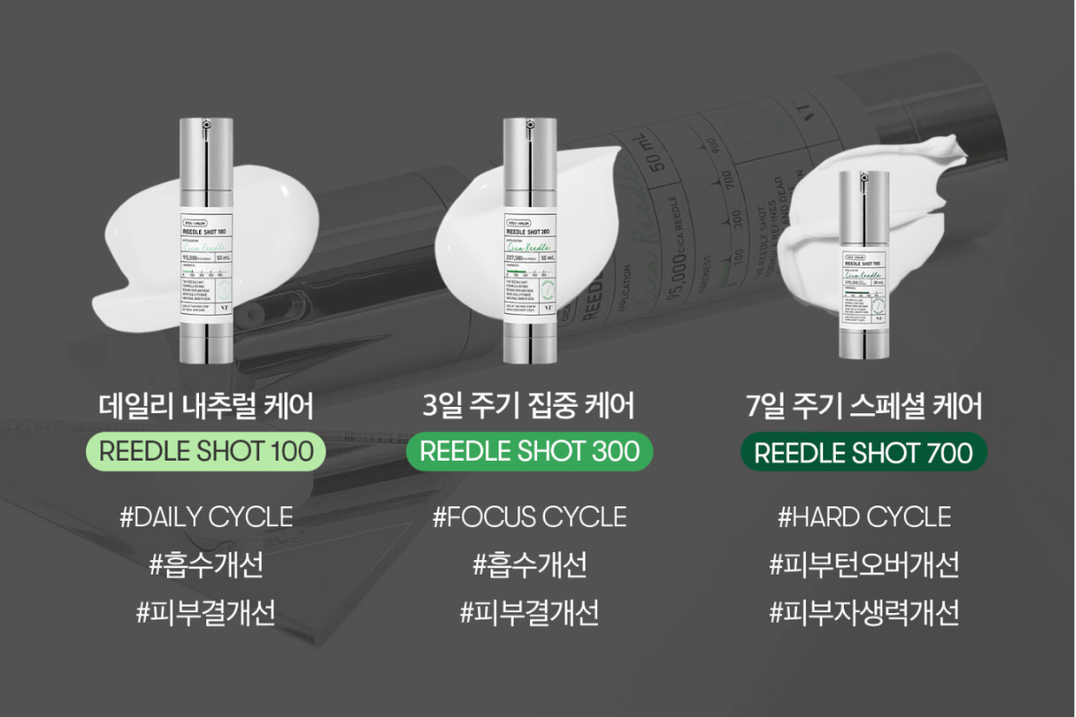 この製品は強度が3段階に分かれていて、数日間の使用でも滑らかでツヤのある肌になれると世界中のSNSで人気を集める話題のアイテムです。CICAエッセンスに含まれる微細なマイクロニードルによって肌が美容成分を吸収しやすくします。各タイプの違いは以下の通りです。