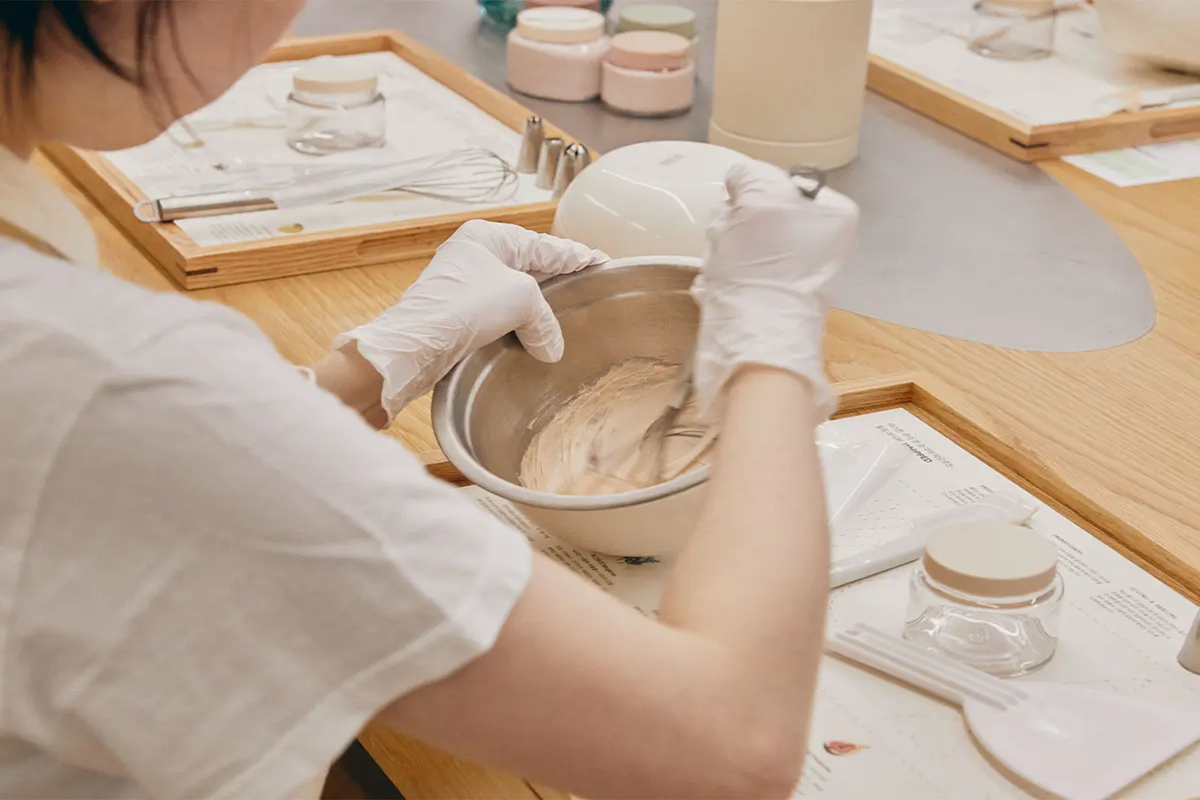 Creatrip限定のワークショップでは、肌診断を受けたうえで自分の肌に合うパッククレンザー作りを体験できます。ホイップクリームのようなテクスチャーや、香り・色を選べる楽しさも魅力で、店内も写真映えすると好評。友達やカップル、家族旅行の思い出作りにもおすすめです。