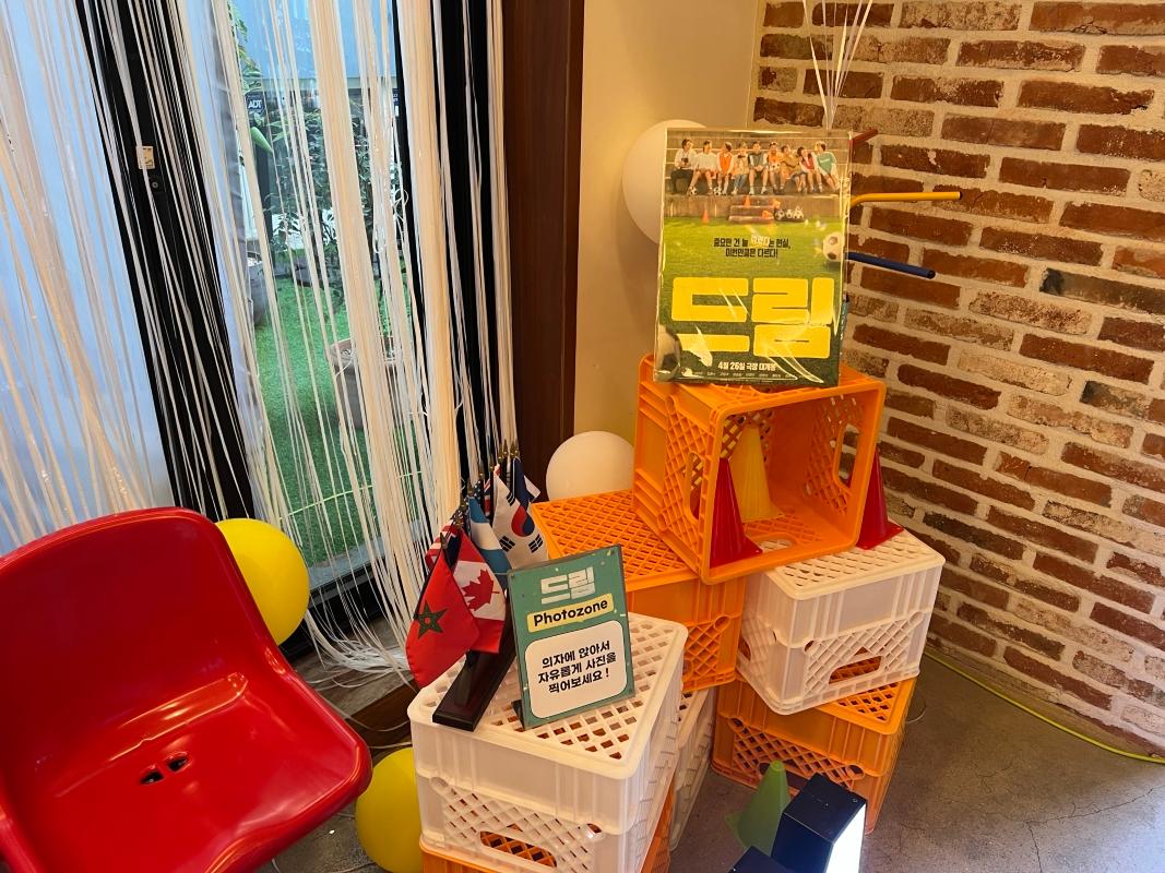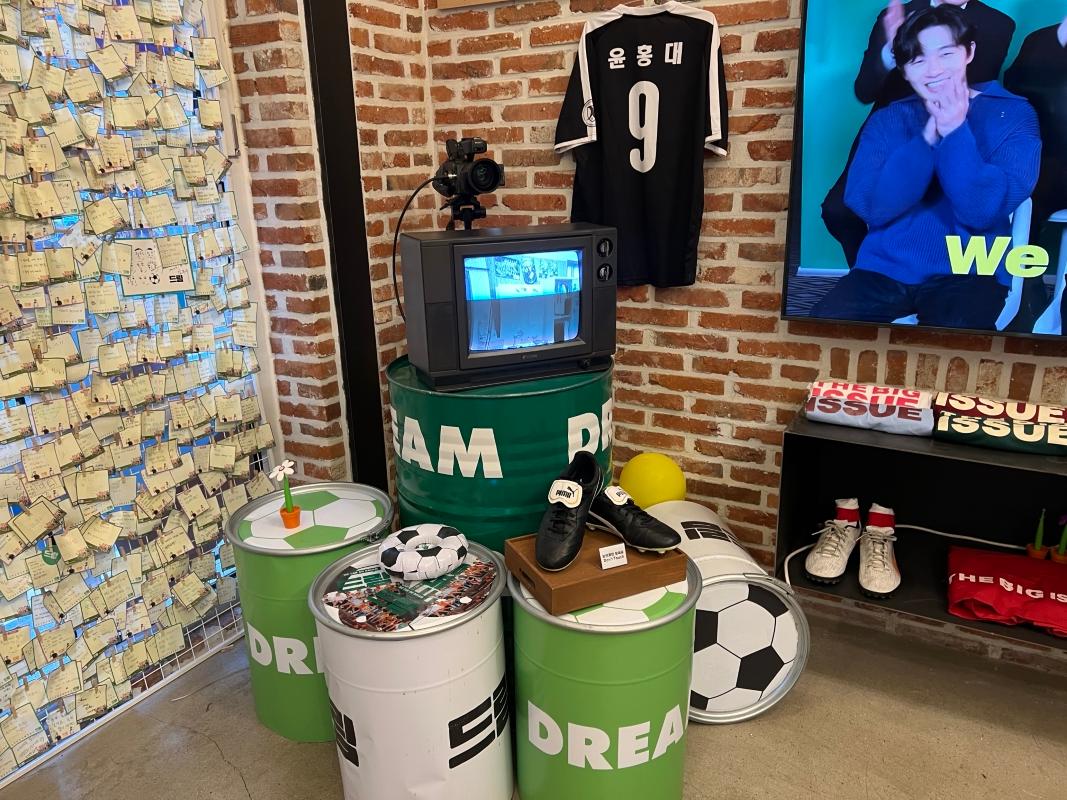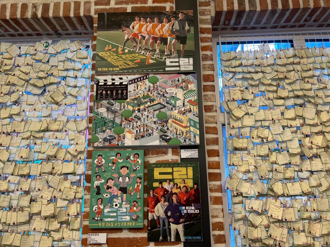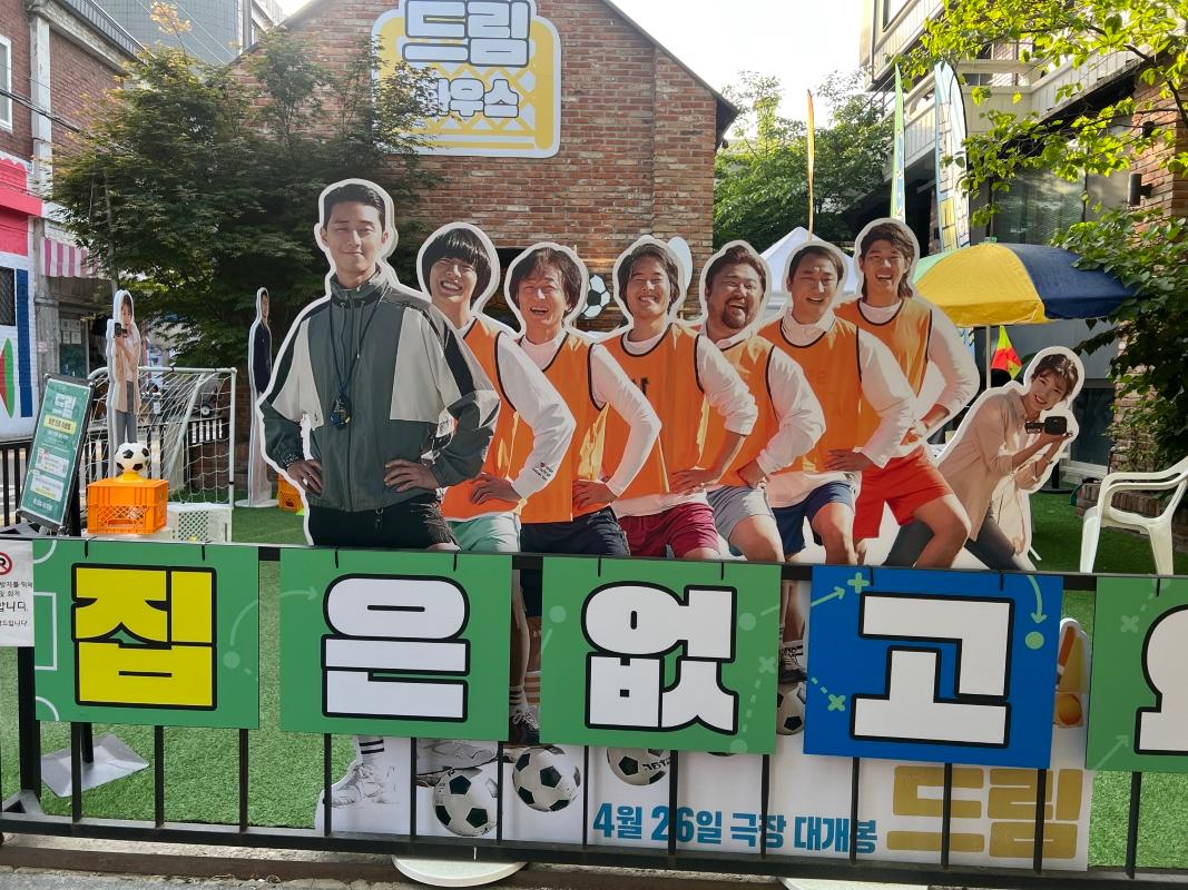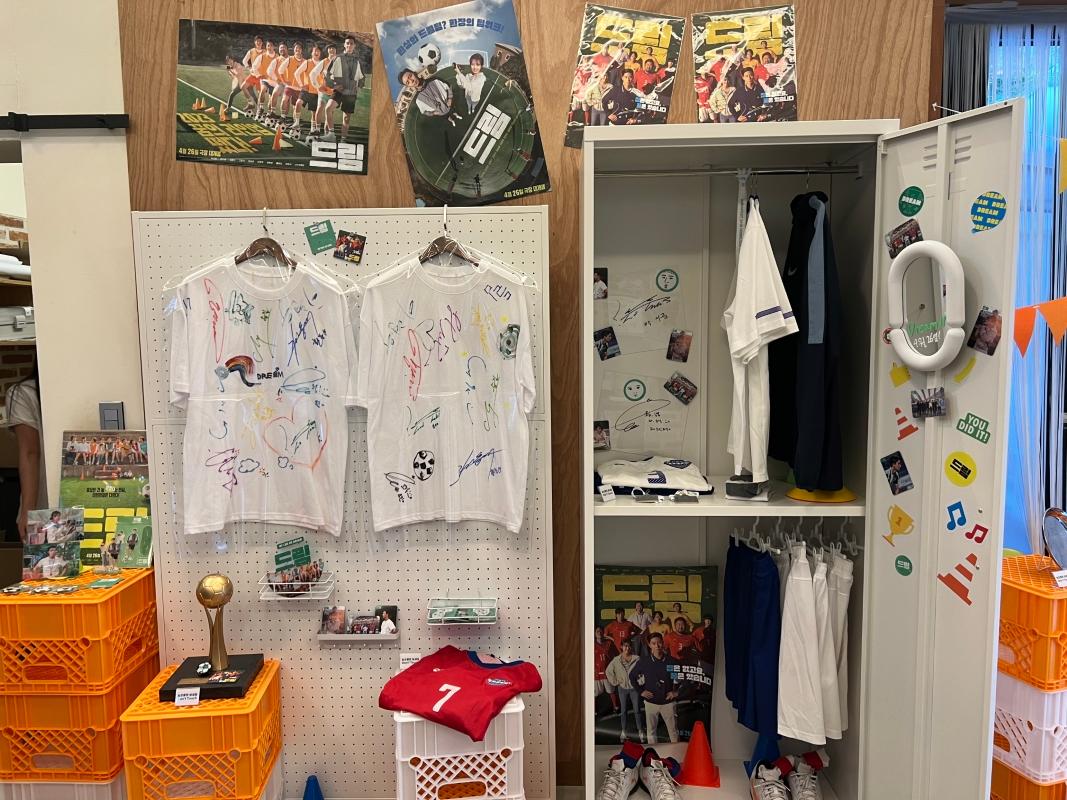 入り口を入ると、まず野外に俳優たちのパネルやサッカーと関連するアイテムが展示されていました!
