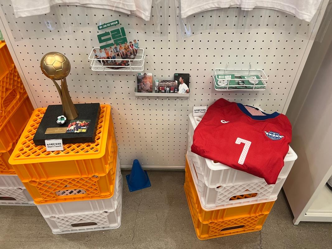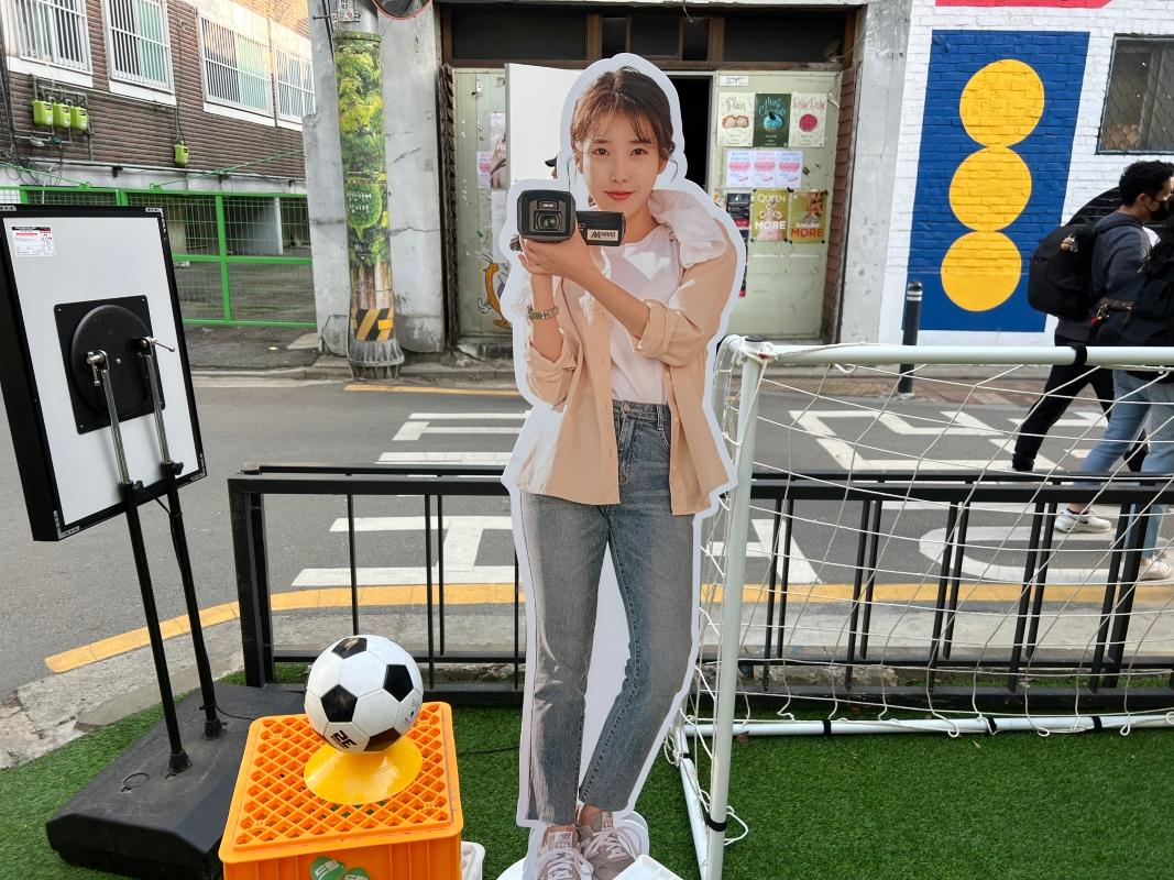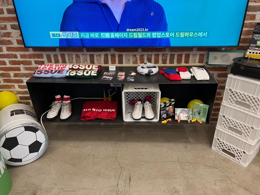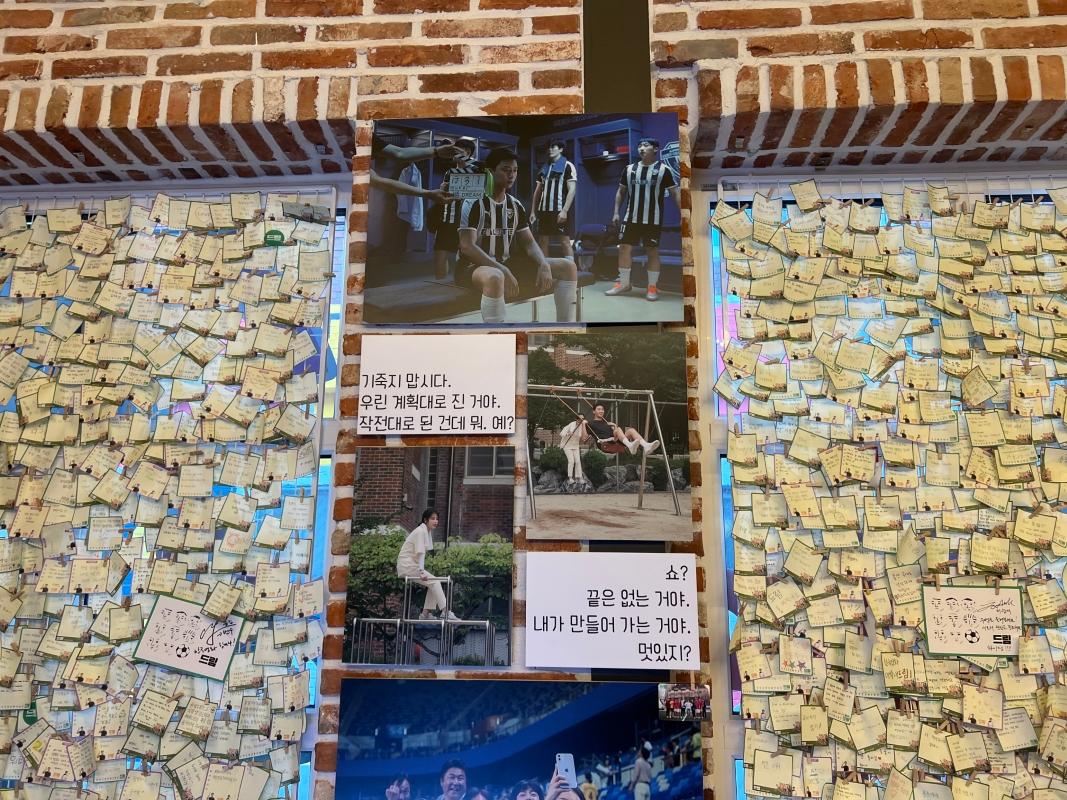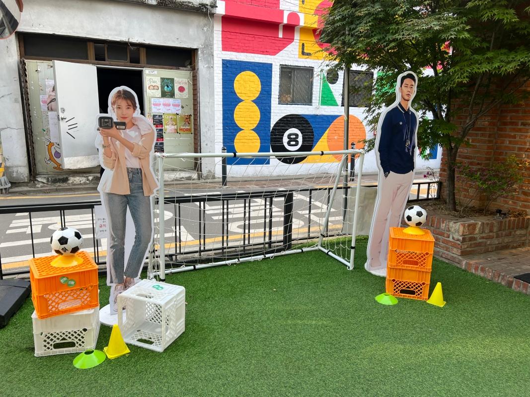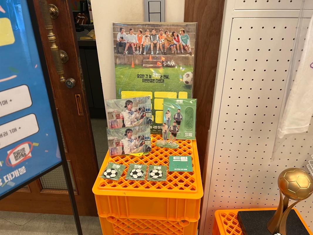 入り口を入ると、まず野外に俳優たちのパネルやサッカーと関連するアイテムが展示されていました!