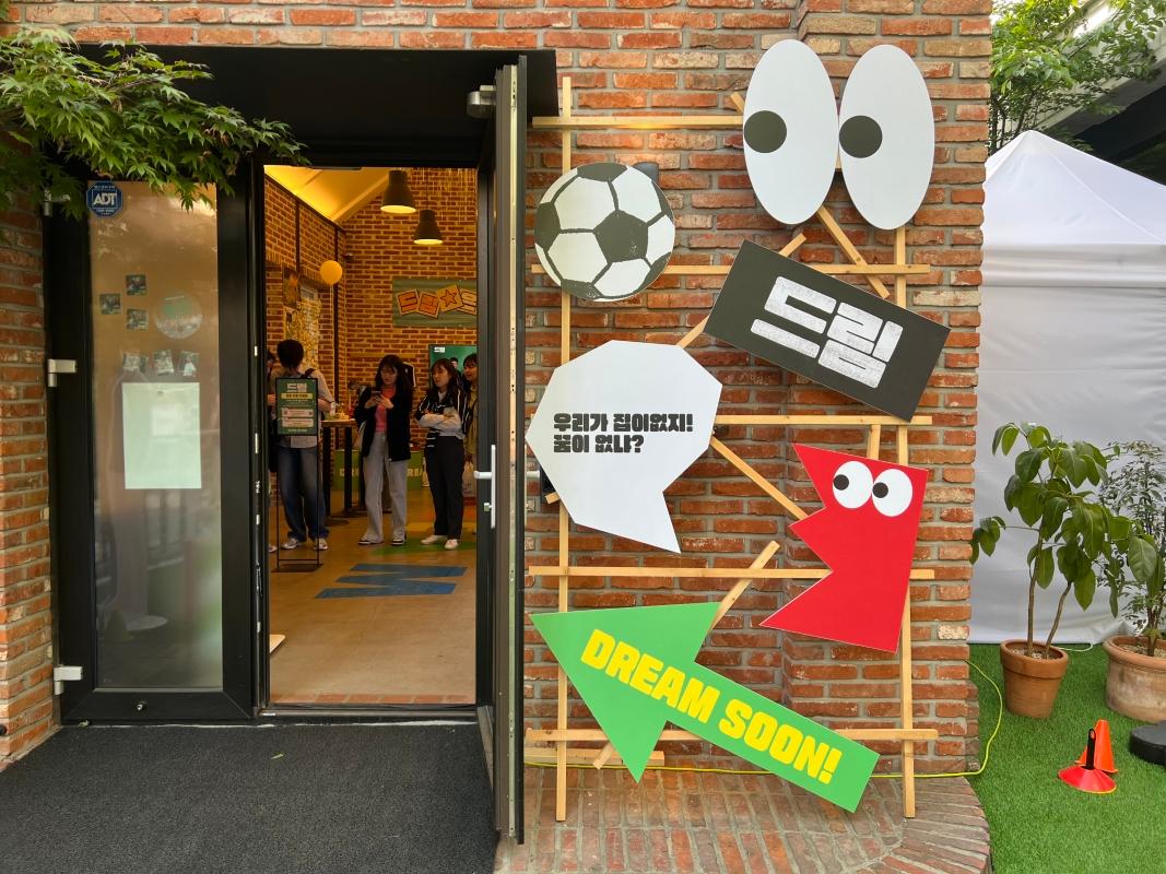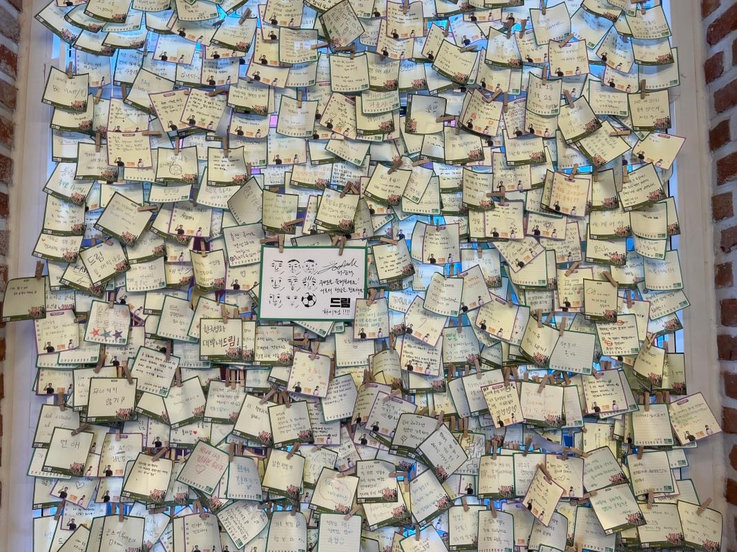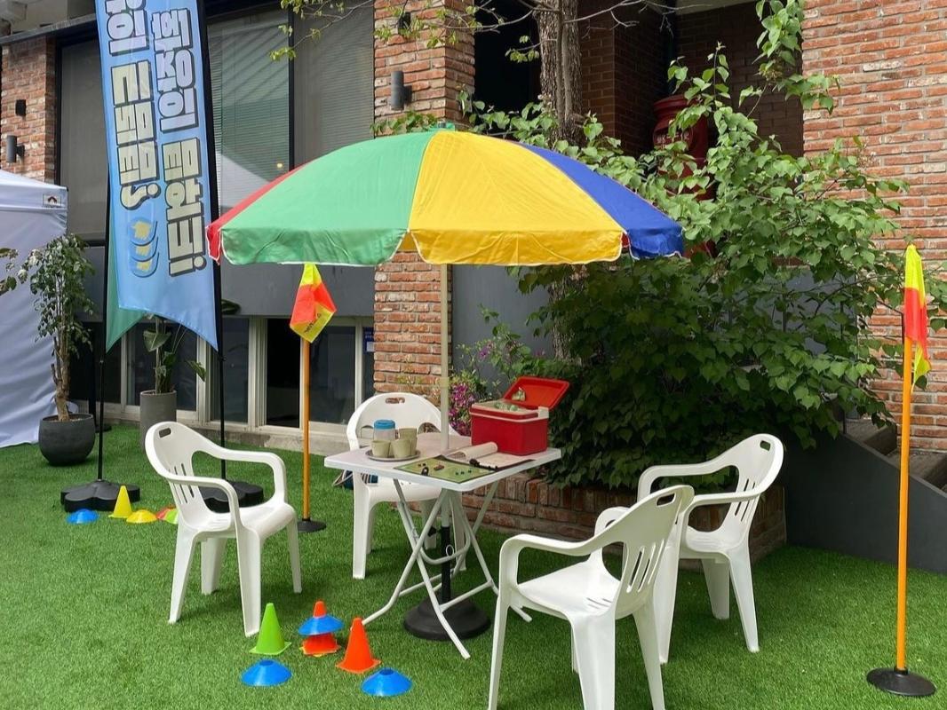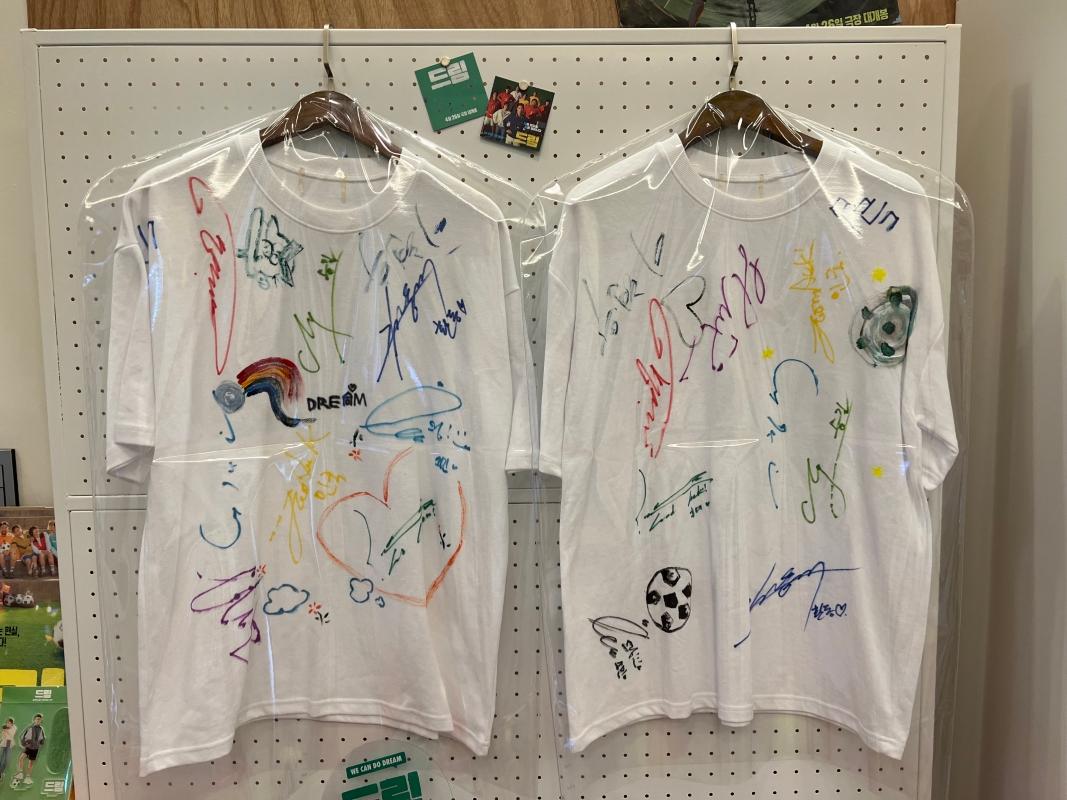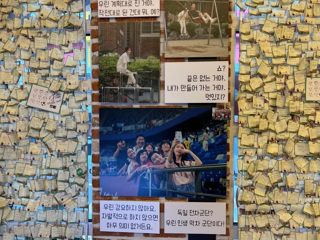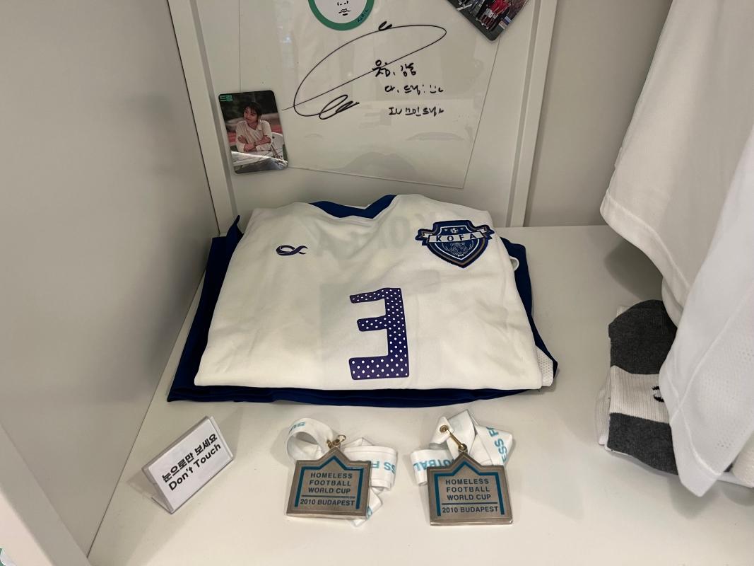 入り口を入ると、まず野外に俳優たちのパネルやサッカーと関連するアイテムが展示されていました!