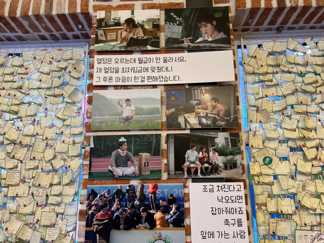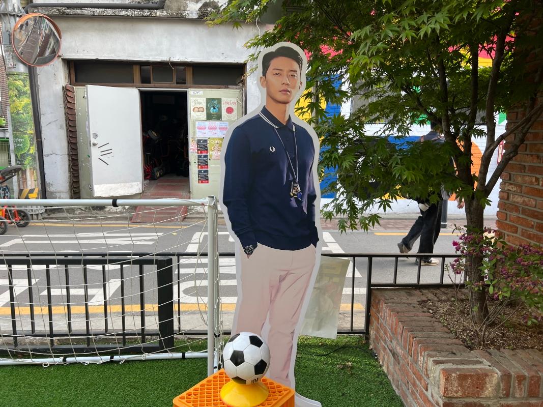 ソウルの森のカフェ通りを歩いていると俳優たちがが迎えてくれました!