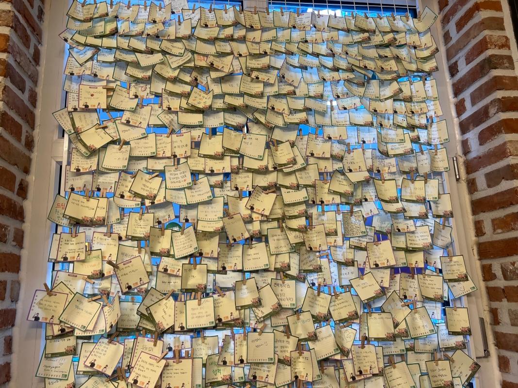 入ったときから気になっていたのですが、左側の壁には一面に付箋が…
