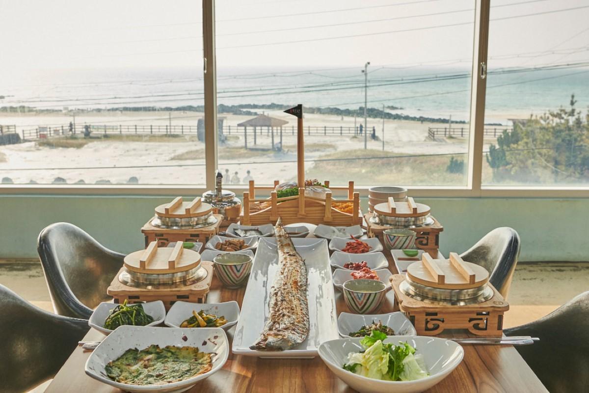 きれいな済州の海を背景においしいタチウオ料理を味わってみてください
