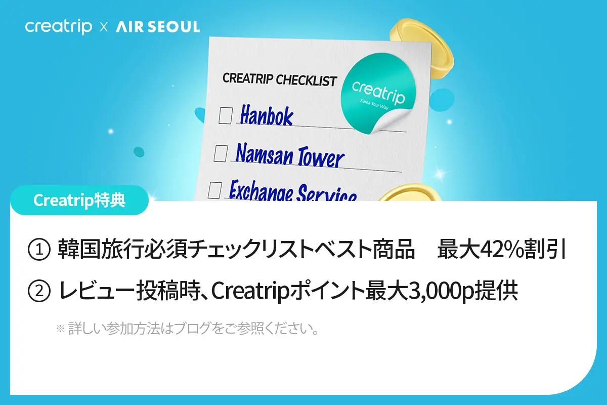 4. プロモーション特典 : エアソウル航空券最大88%OFF + Creatrip旅行商品最大42%OFF + Creatripポイント3,000p追加提供