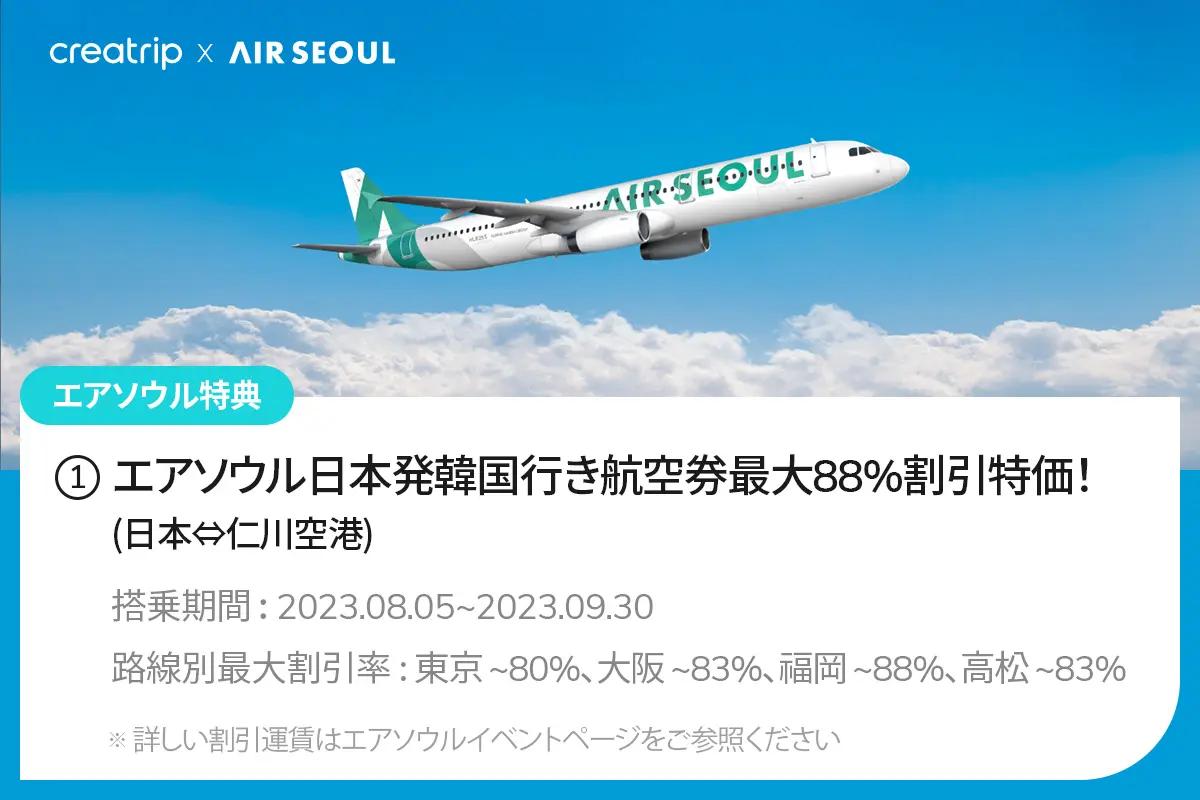 AIRSEOUL特典 : 航空券最大88%割引✈️
