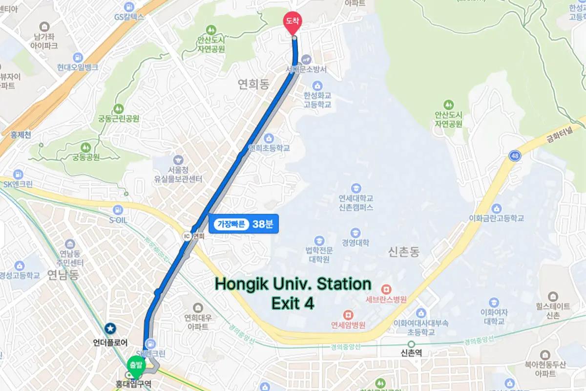 バス停「한성화교중고교.서대문소방서 (ID:13152)」で降ります。