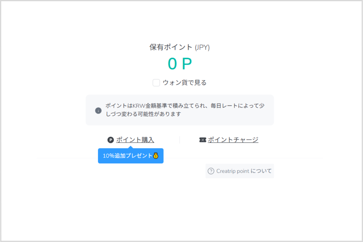 クリエイトリップでは、商品の予約・購入やレビュー投稿などで手軽にポイントを貯めることができます。ポイントは決済金額に応じて付与されるほか、フォトレビューや韓国旅行の体験をもとにブログを作成するとボーナスポイントの獲得も可能です。