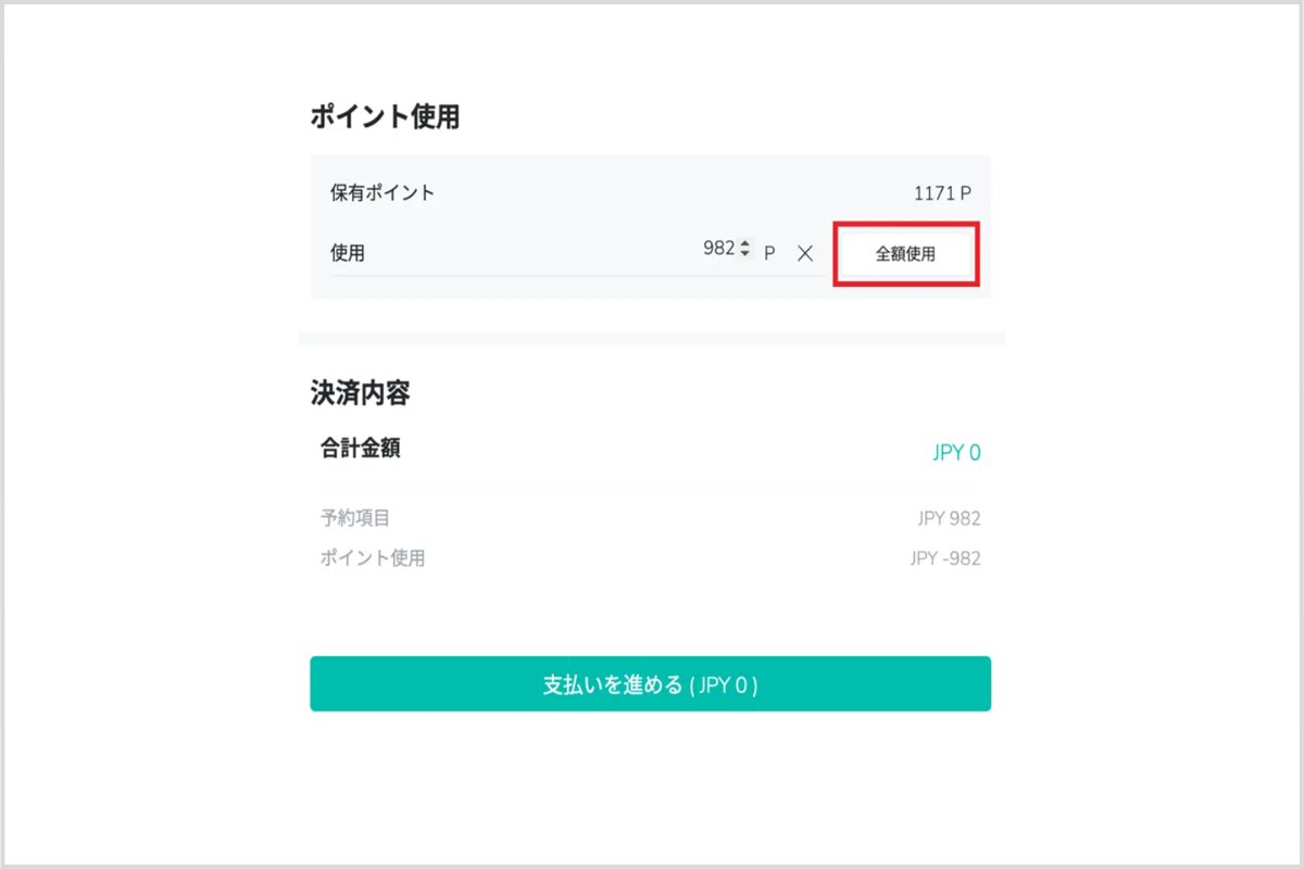 獲得したポイントは、商品の予約や購入時の決済画面で自由に使用できます。支払い金額の全額に充てることもでき、使用済みポイントは履歴に残るため、いつでもマイページの「ポイント」から確認可能です。