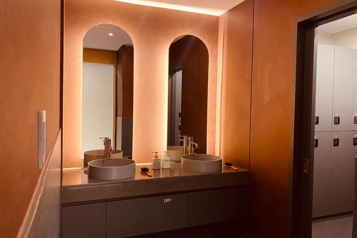シュリンクユニバースの施術を受ける場合は、施術前にまずは洗顔をします。パウダールームにはクレンジング用品やヘアドライヤー、ヘアバンド、ヘアブラシ、使い捨てタオルなどのアイテムがすべて用意されています。