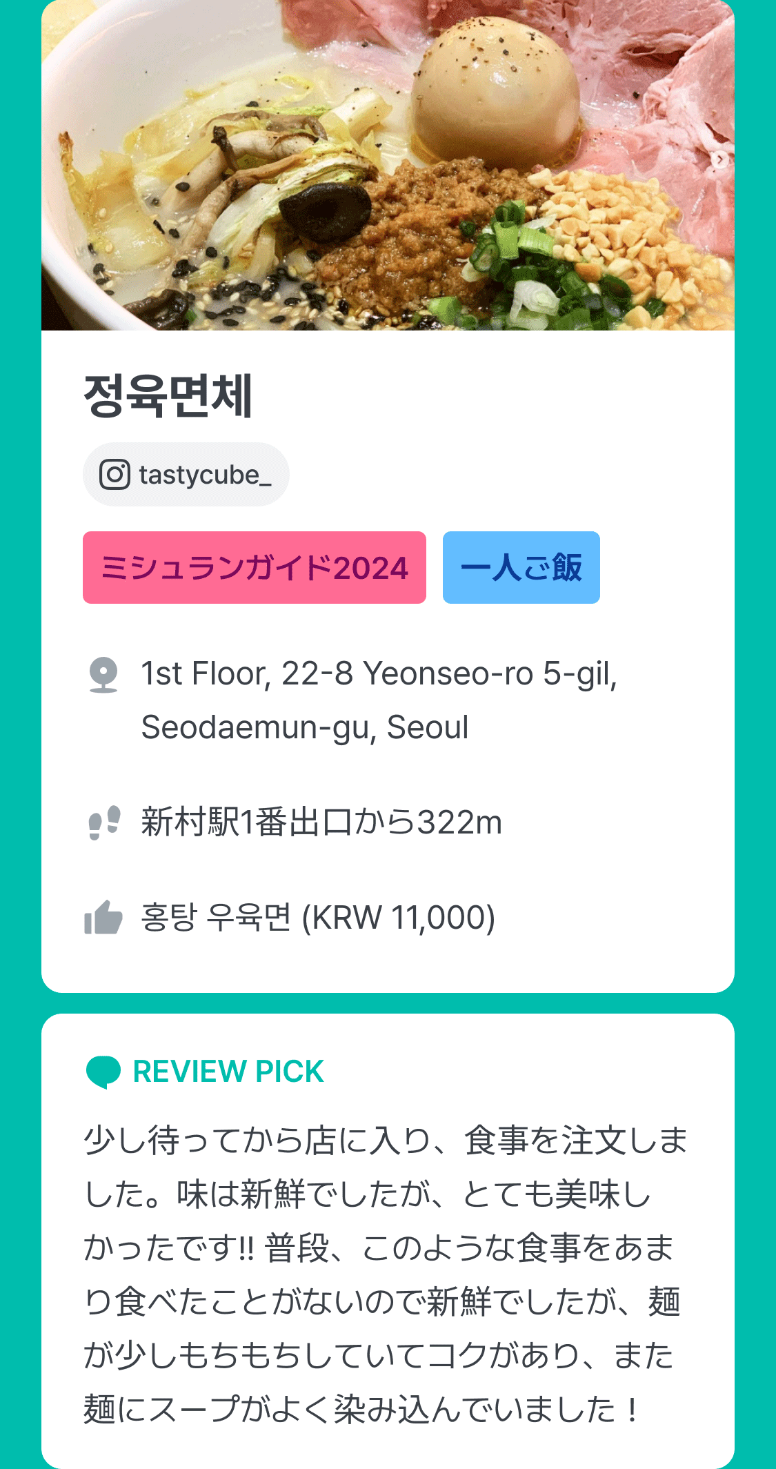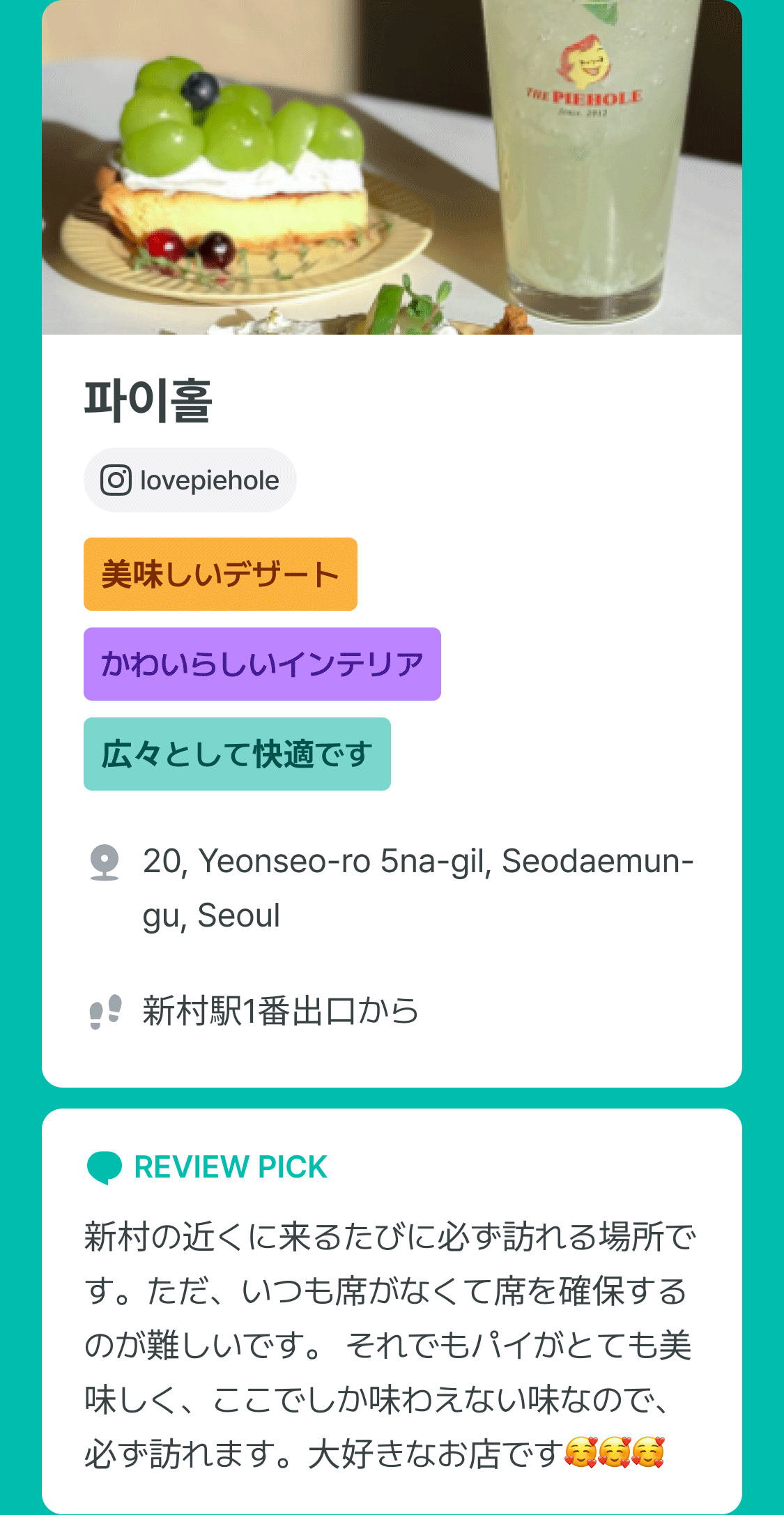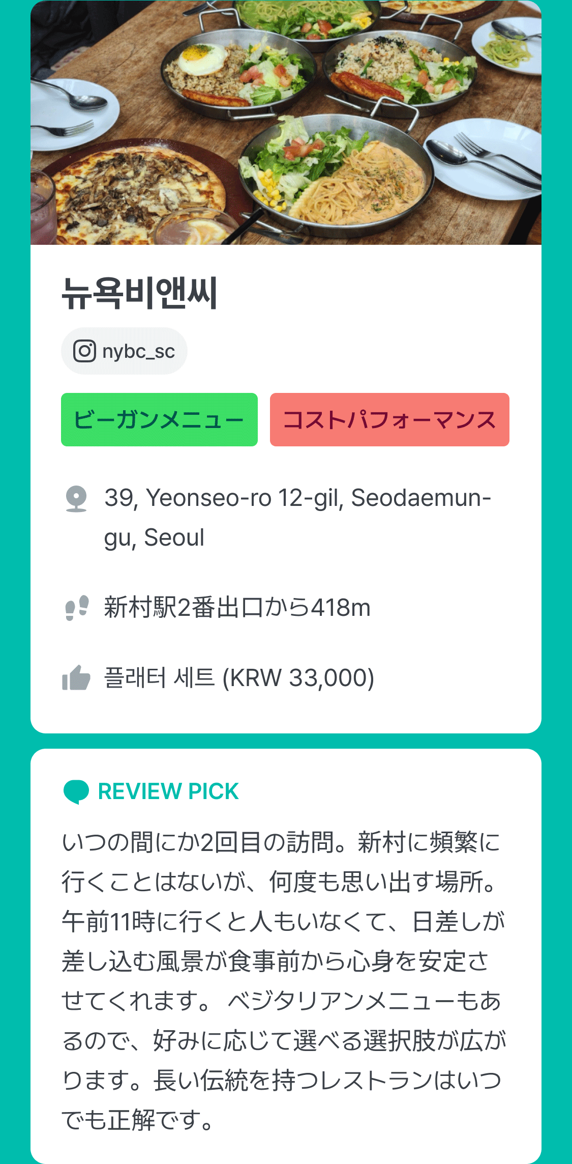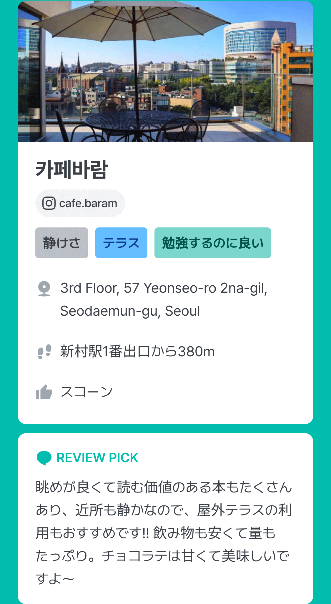 「ネイバーマップ」では、現在の地図画面を基準に周辺のレストランやカフェを簡単に見つけることができる機能を提供しています。