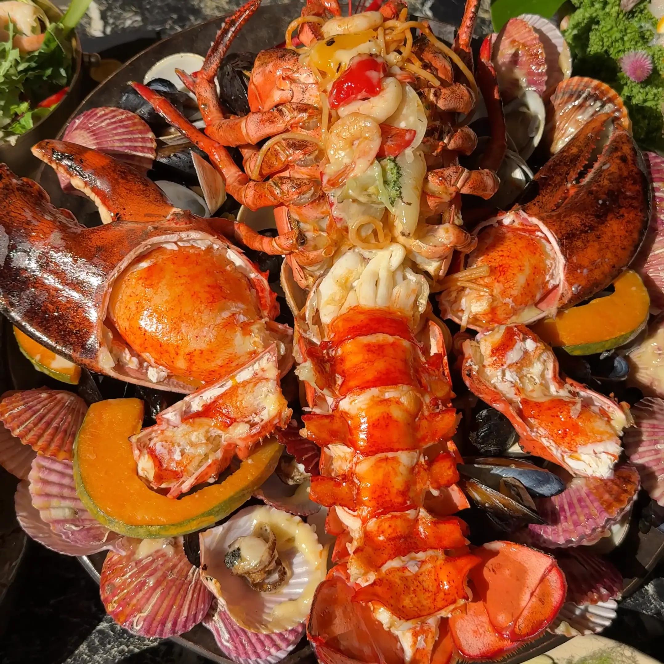 ロブスター蒸しは、身がぎっしり詰まったロブスターをバターで調味した野菜、内臓と一緒に提供されるメニューです。甘くて香ばしい香りが鼻先を刺激し、まだ味見前でもすでに期待が高まります。