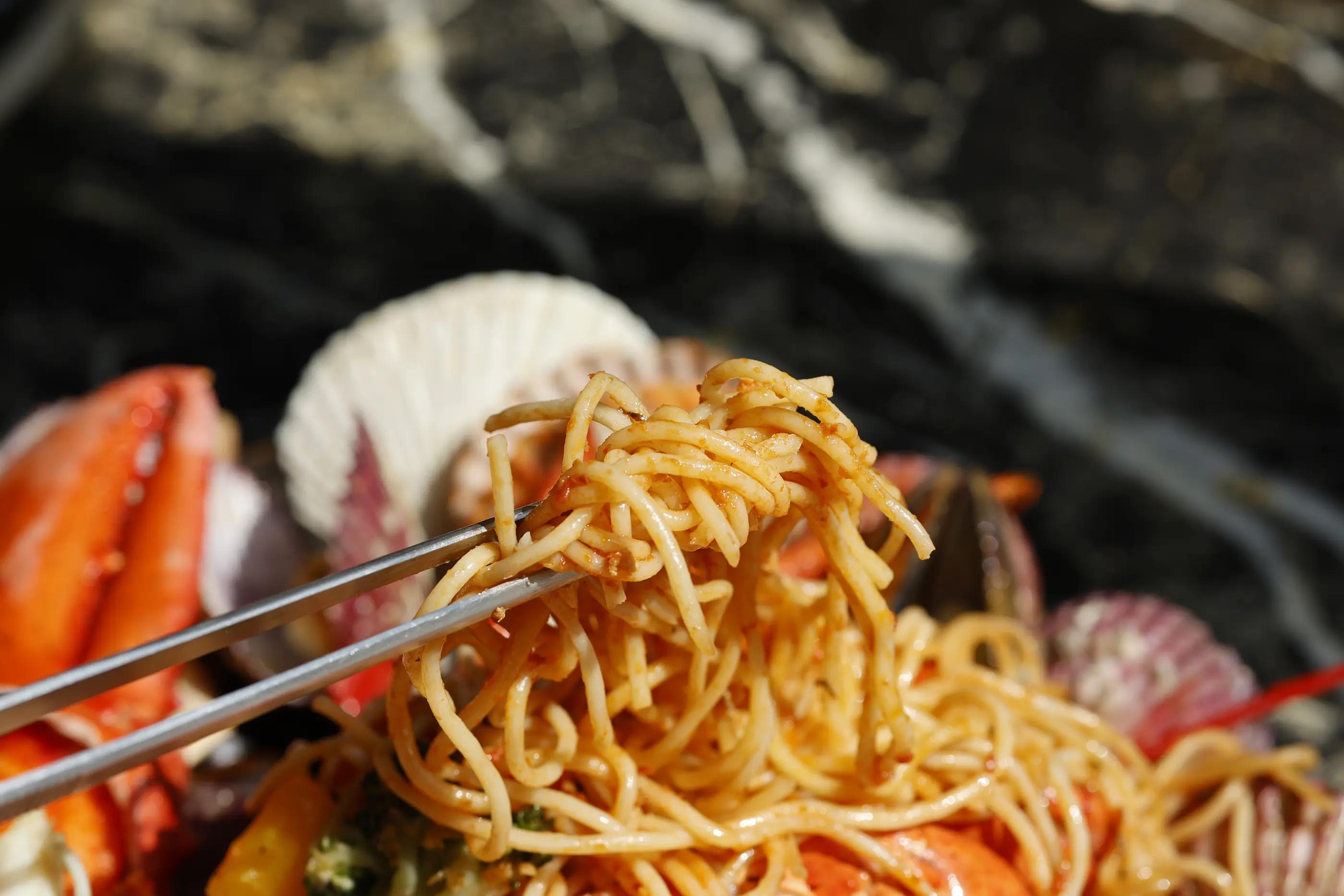 ロブスターの内臓と一緒に炒めたパスタが入っており、本当に豊かなロブスター蒸しです。パスタとこうしてうまく組み合わさることができるとは知らなかったが、一般的なパスタよりもさらに深い風味が感じられます。
