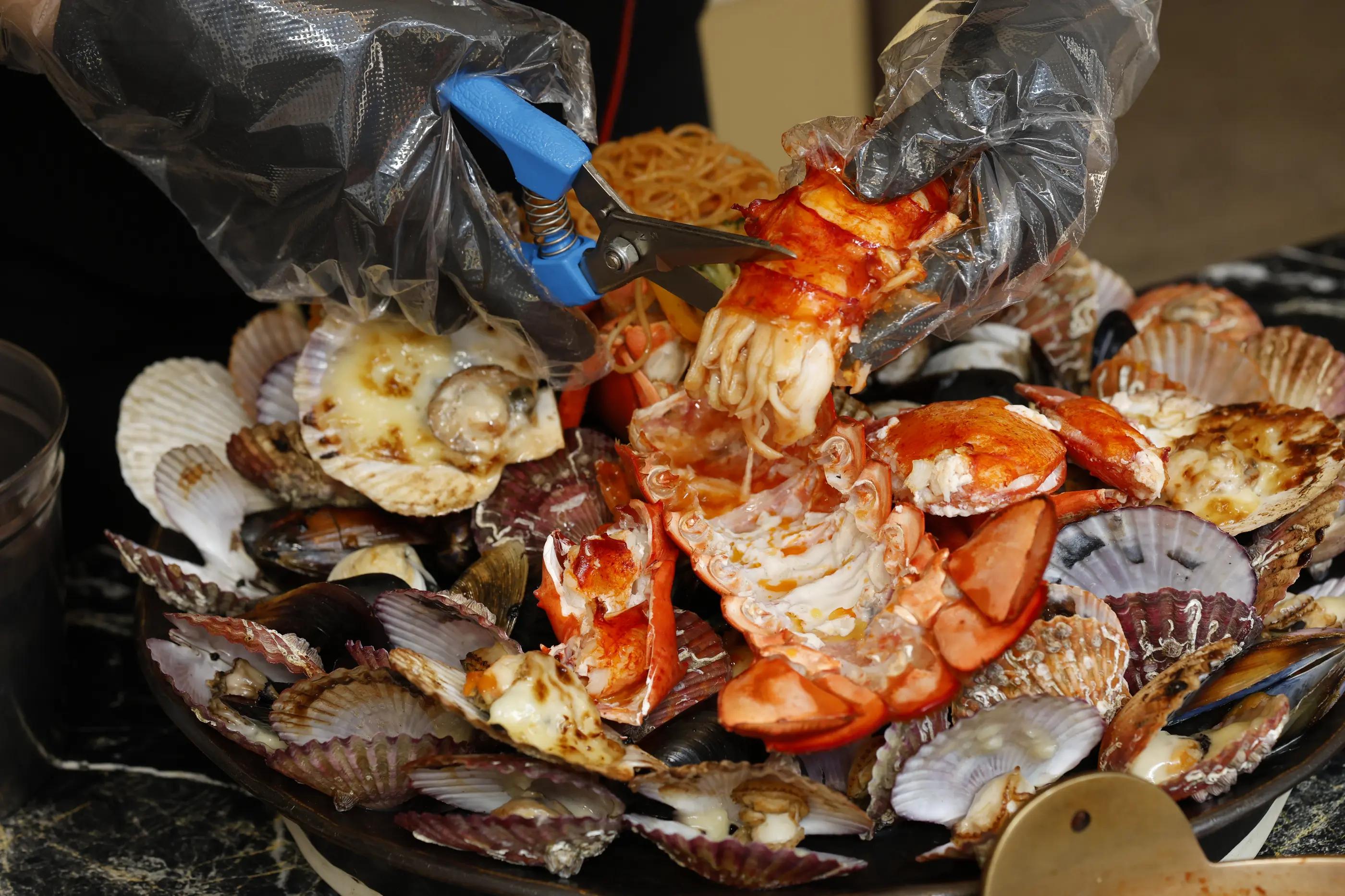バターで焼いたロブスターの蒸し物には、ロブスターの内臓と一緒に炒めたパスタが入っており、ロブスターの鍋うどんには様々な海産物とロブスターが丸ごと入っていて、本当に豪華です。
