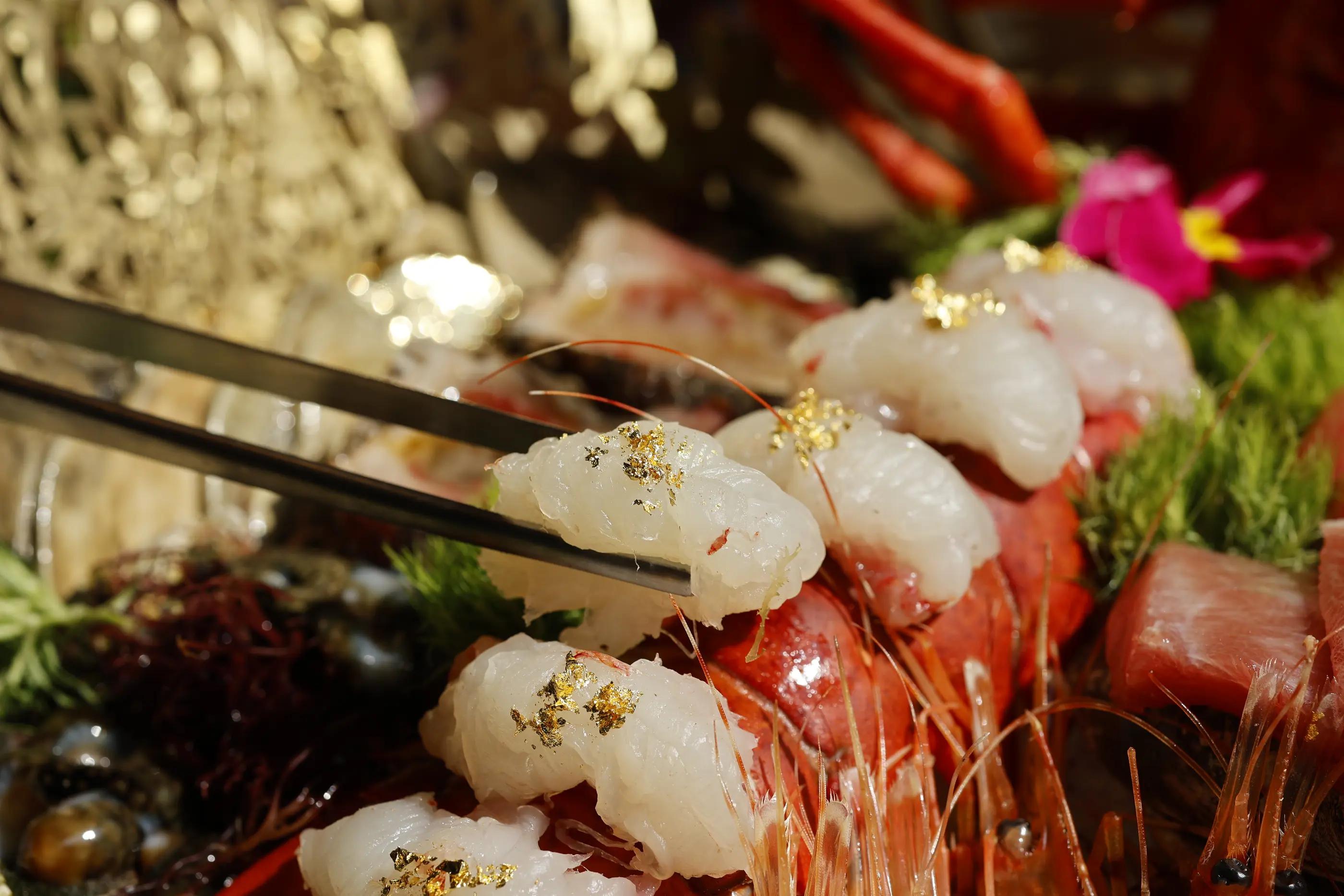 見るだけでぷりぷりしたロブスター刺身は、金粉までサラサラ振りかけられていて、高級感が感じられます。