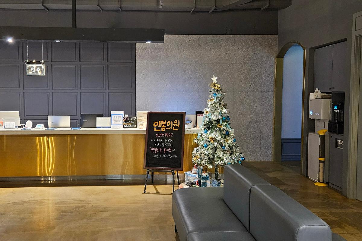 店内に入ると、暖かい照明と広々とした待合スペースとレセプションがあります。また、入口右側には本物の認証マークと韓国消費者評価1位の賞があり、信頼できます。