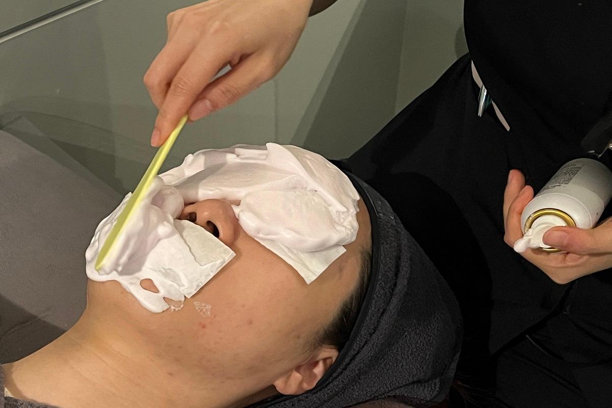 まずきれいにクレンジングをしたら、生クリームトリートメントを受けます。とってもふわふわで気持ちよく、施術の説明もひとつひとつが丁寧でした!