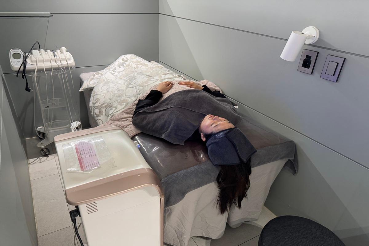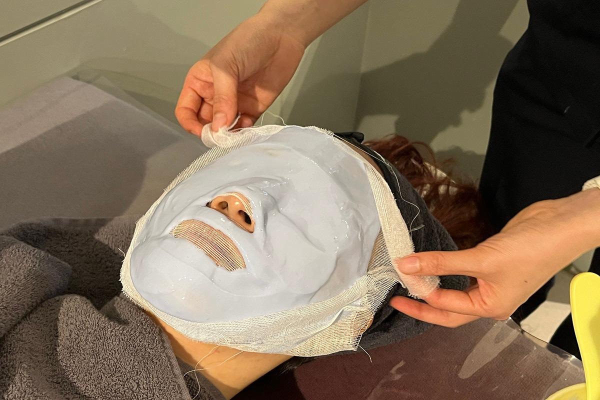最後は鎮静パックとモデリングパックで仕上げます。施術が始まってからずっと横になったままですが、ベットが温かくてつい眠ってしまいそうになりました。