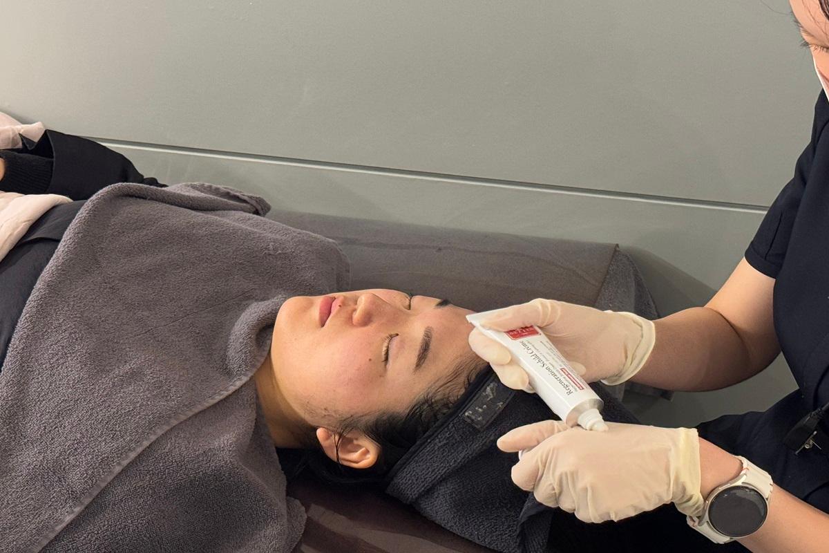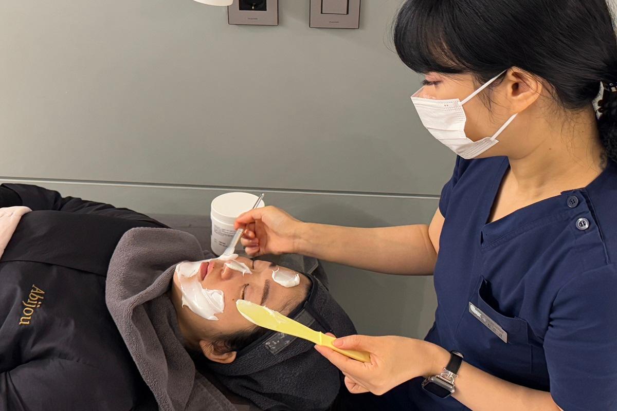 ニキビ圧出とレーザー施術の後は、肌への刺激を減らすための沈静ケアまで丁寧に行われます。