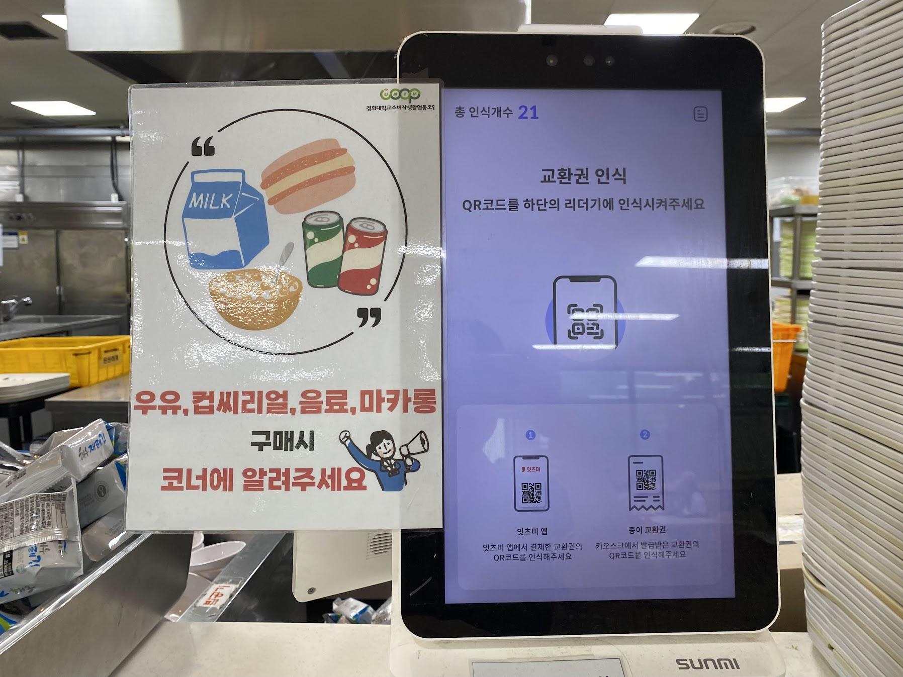 慶熙大学の学食の場合、食券の提出方法が最新式だったので共有したいと思います