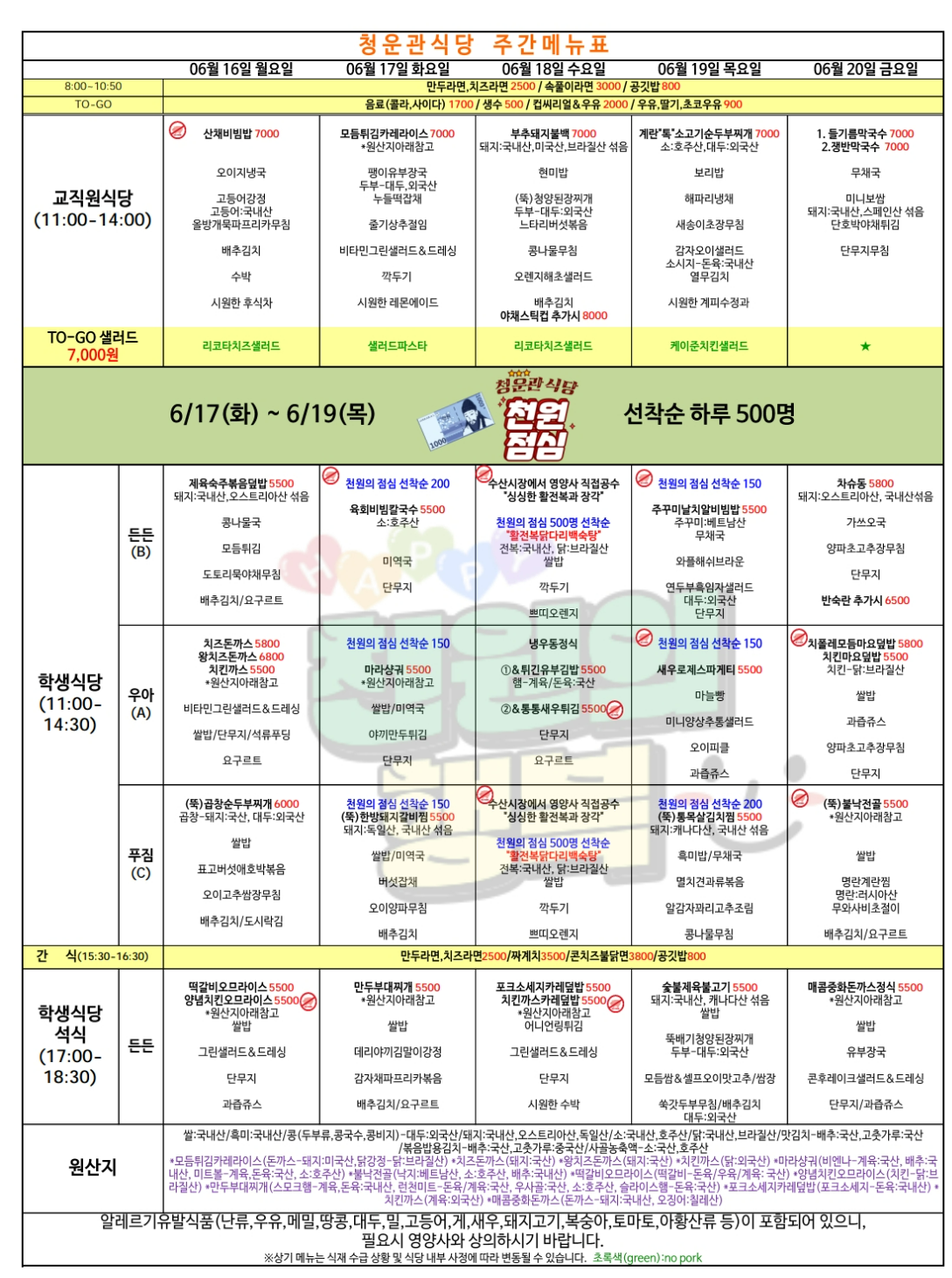慶熙大学で各学食の週間メニューをオンラインで確認することが可能!メニューの確認はこちら→(クリック)