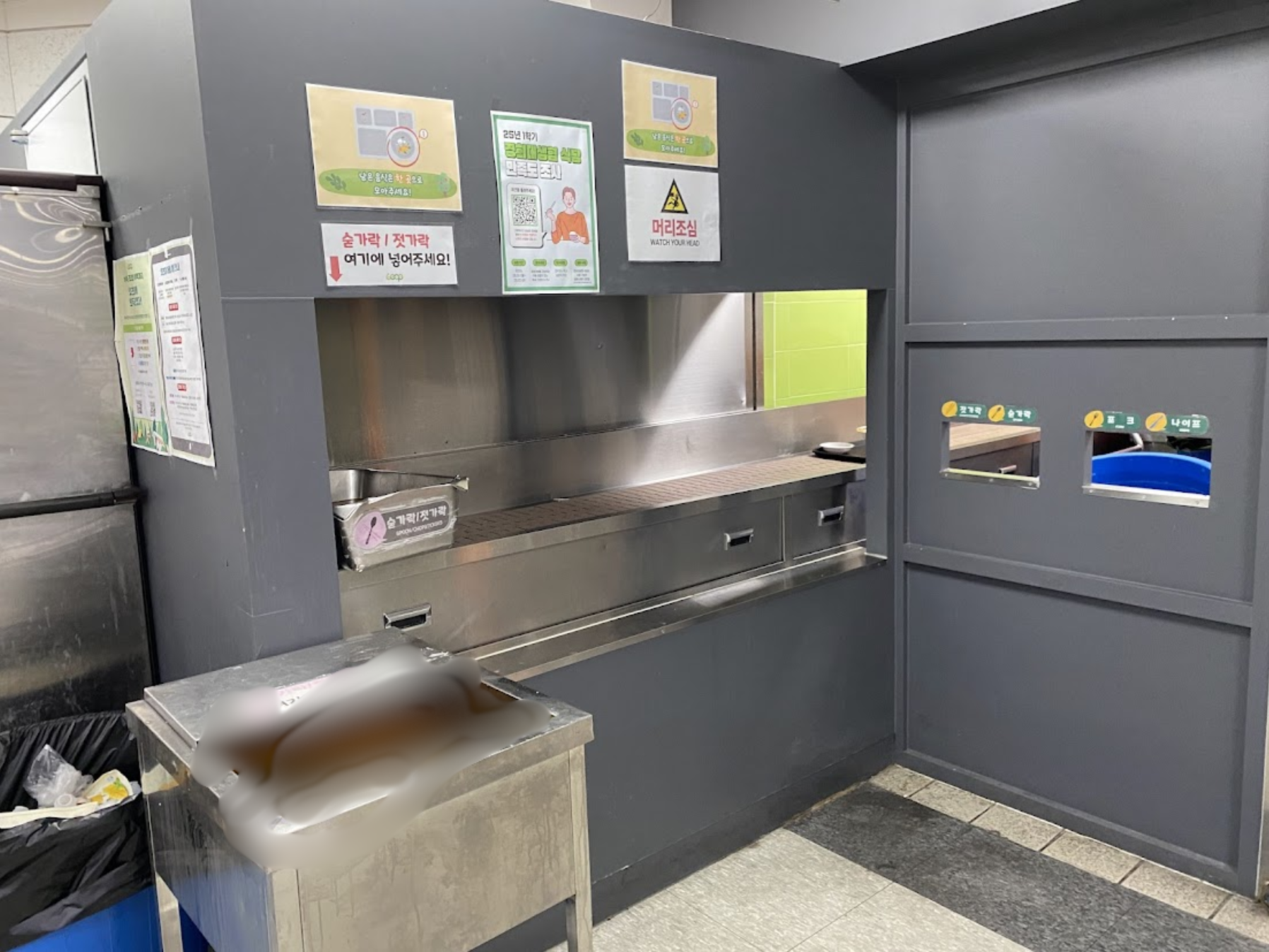 ここの学食も返却する際には箸とスプーンを専用の返却口に入れた後、トレイごとレールに乗せるだけです
