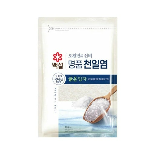 | 천일염 (チョニリョム:天日塩) | ![]() | 海水を太陽と風の力で自然に乾燥させて作る伝統的な塩。 粒が大きく、ミネラル分が豊富で、まろやかな塩味。 | キムチ、野菜の下ごしらえ、 |
