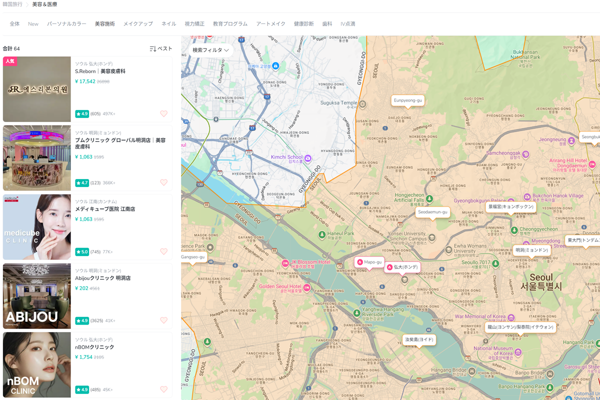 弘大・明洞・江南など、人気エリア別にわかりやすくまとめられているので、旅行中でも自分にぴったりのサービスが簡単に見つかります。旅の計画にぜひお役立てください。
