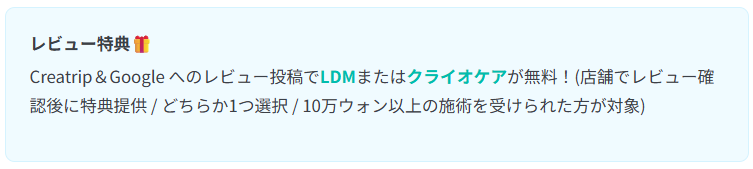 さらに、不定期で開催される期間限定キャンペーンでは、最大25万ウォンのペイバック特典が受けられることも!もちろんこれは、Creatripから予約した方限定の特典。直接クリニックに予約しても適用されないので要注意です。