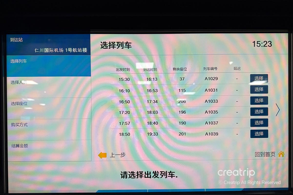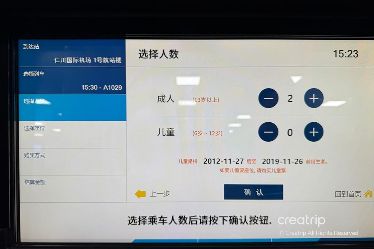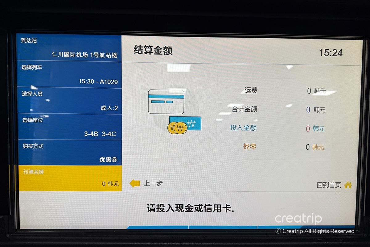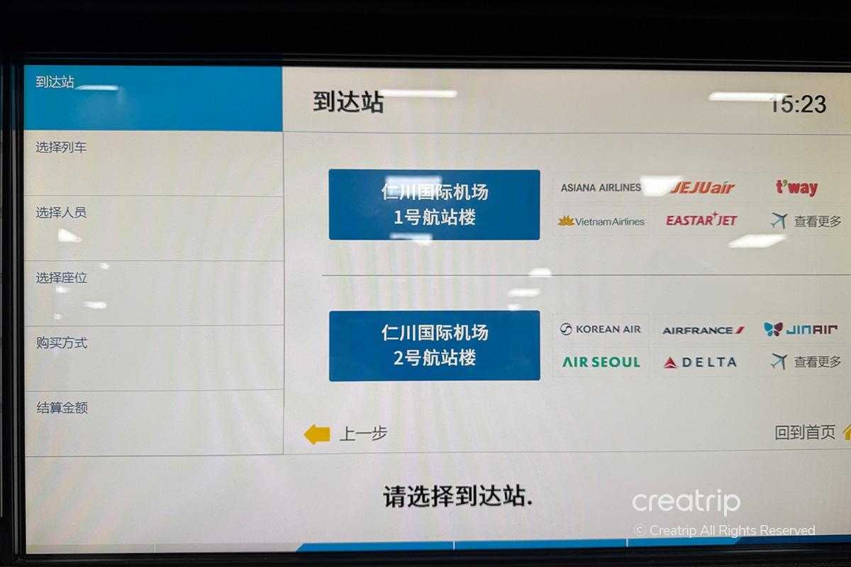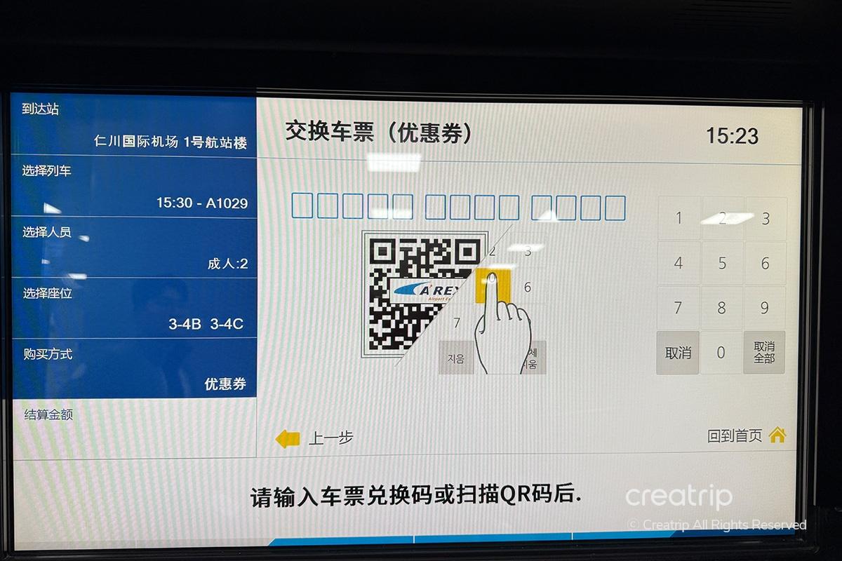 事前に購入した乗車券の到着ターミナル(仁川空港T1またはT2)、乗車時間、人数を選択します。