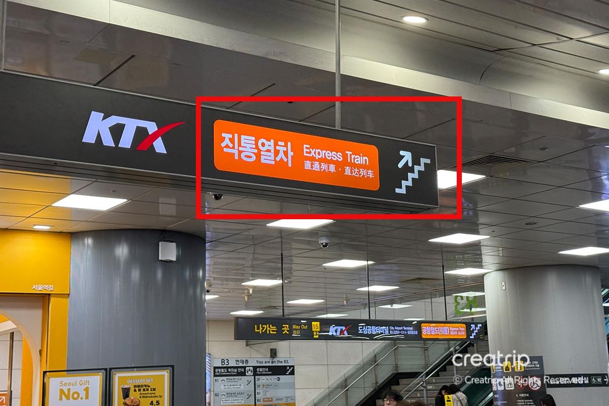 ソウル駅に到着したら、頭上にあるオレンジ色の案内表示に従うだけで、発券機の場所を簡単に見つけることができます。