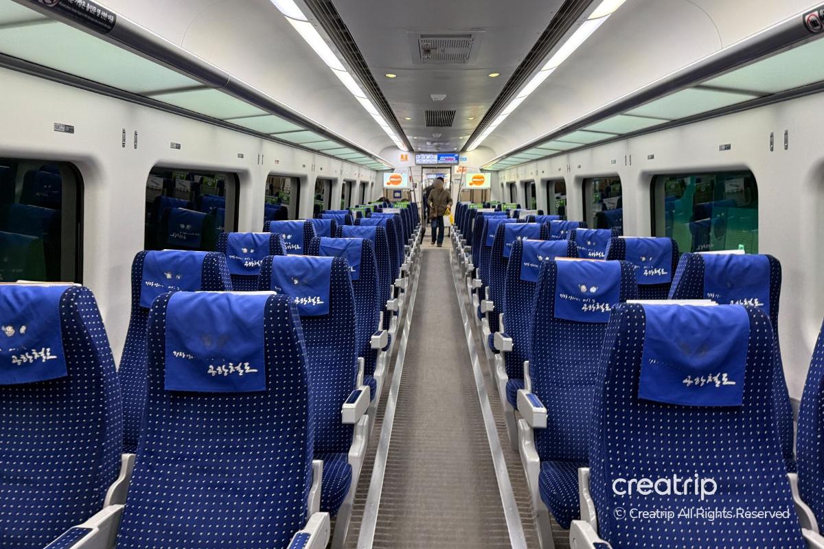 AREX直通列車の座席は、KTXと同様の飛行機スタイルの2+2配列になっています。
