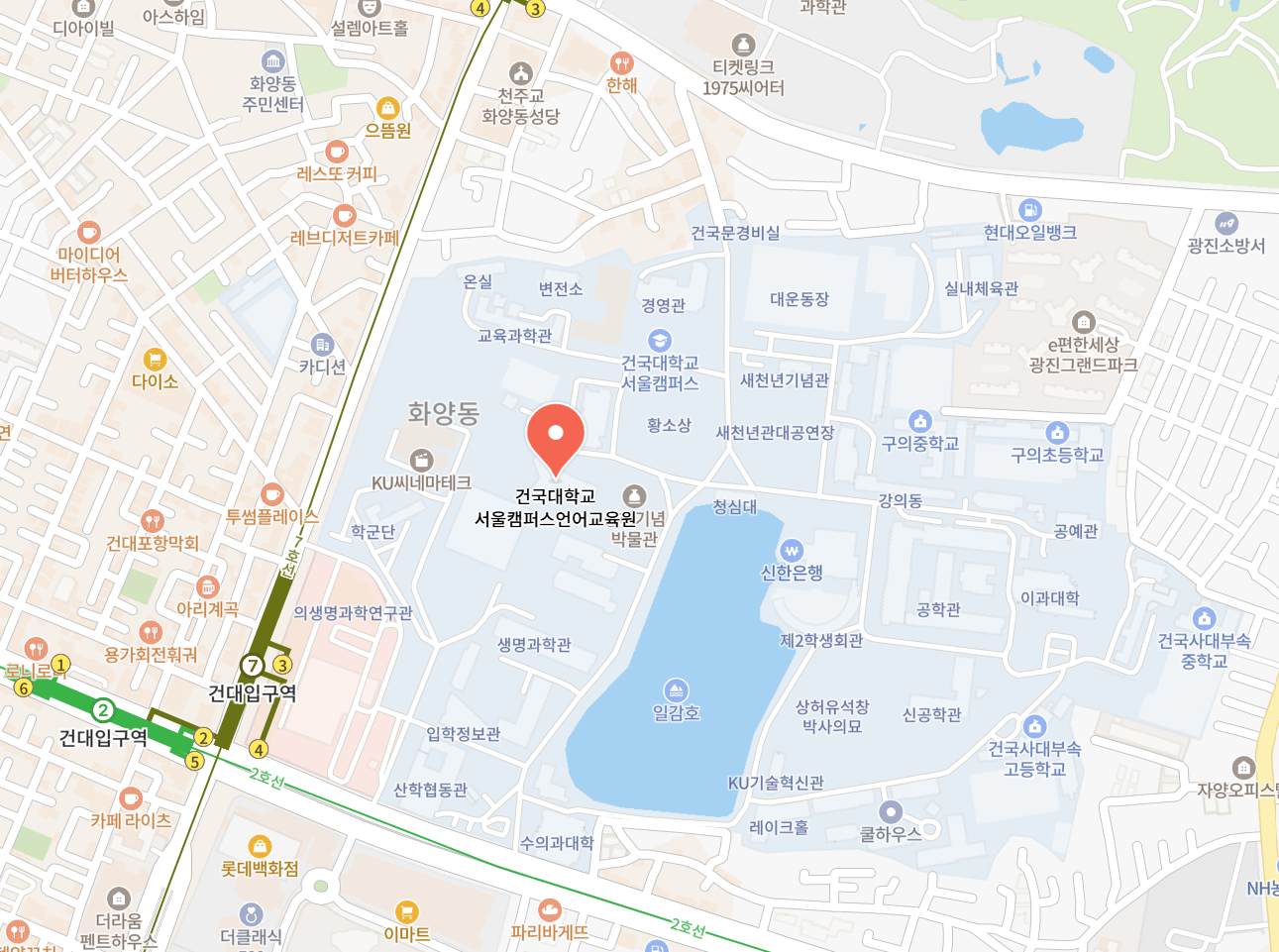 - 住所:ソウル広津区陵洞路120 建国大学校言語教育院