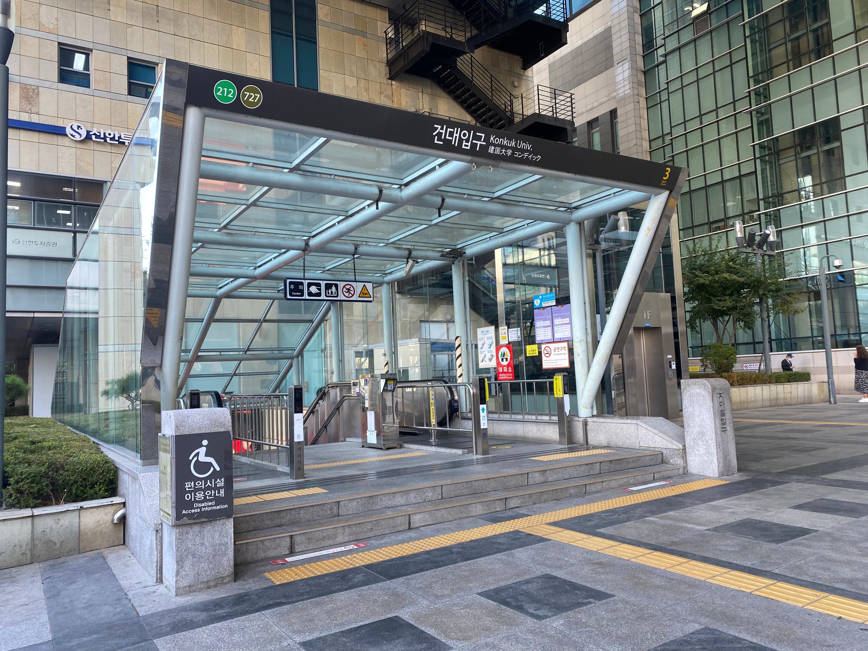 建国大学・語学堂は、地下鉄2、7号線「建大入口駅」すぐ側に位置しています。