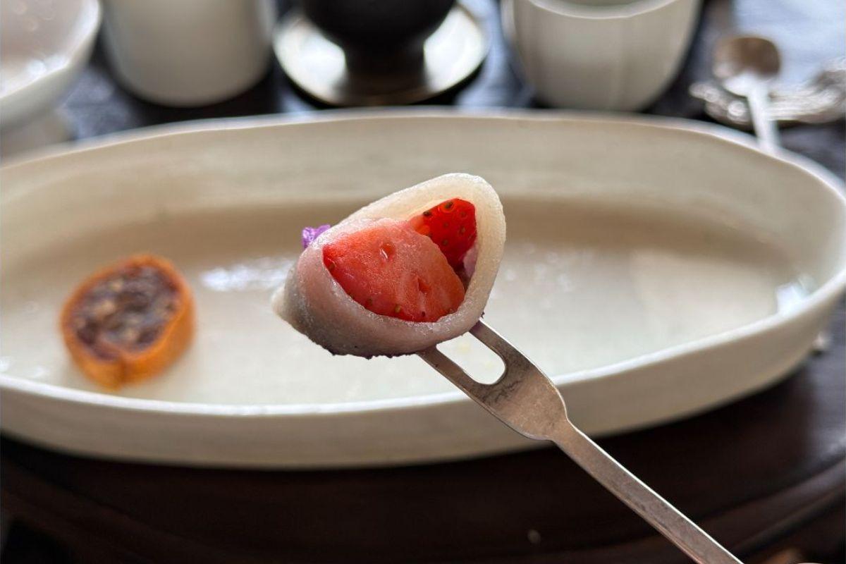 イチゴの甘酸っぱさと、あんこの自然で優しい甘さ、もちもち食感が重なって、口の中が幸せになる味です。