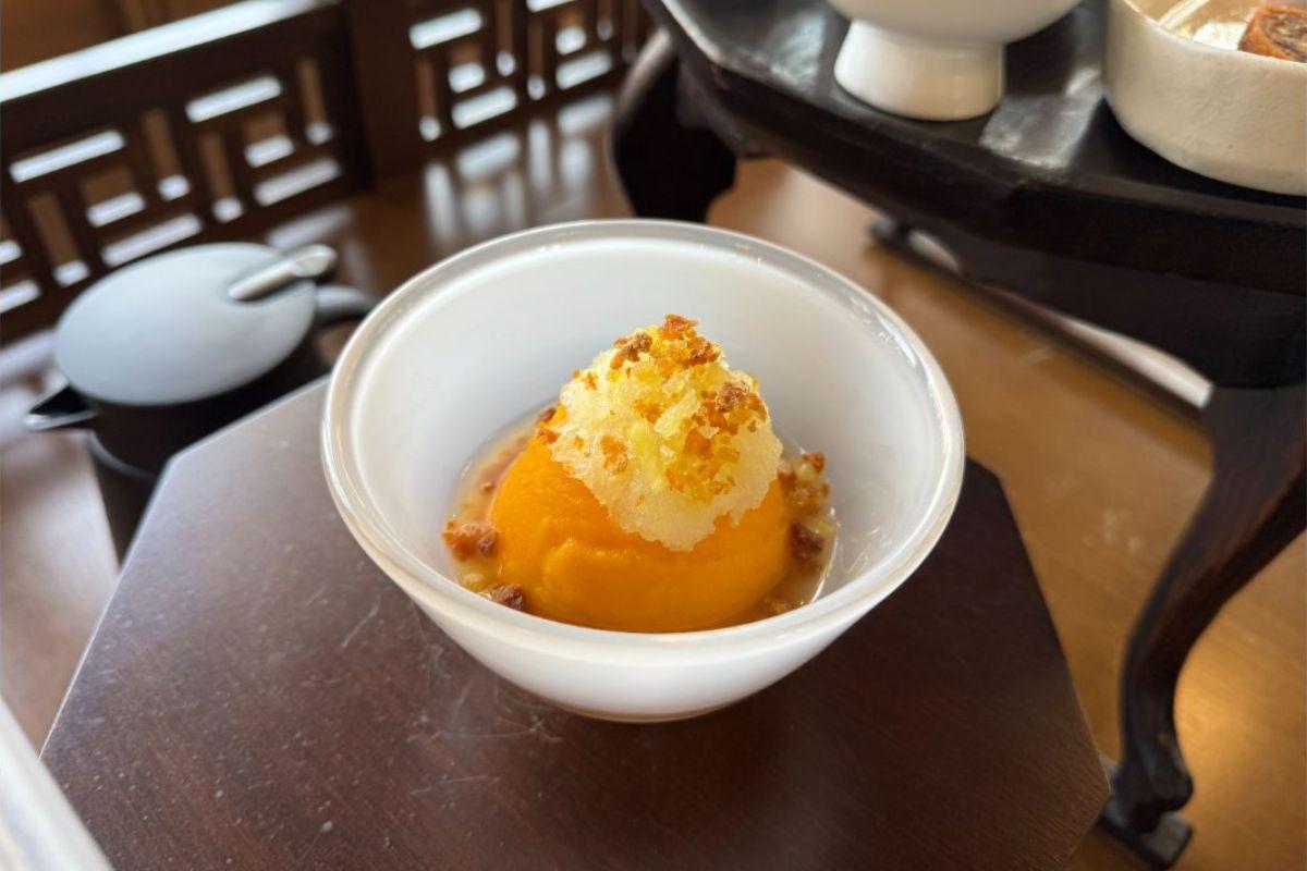 熟したかぼちゃをブレンドして、ソルベアイスクリームのように仕上げた一品。
