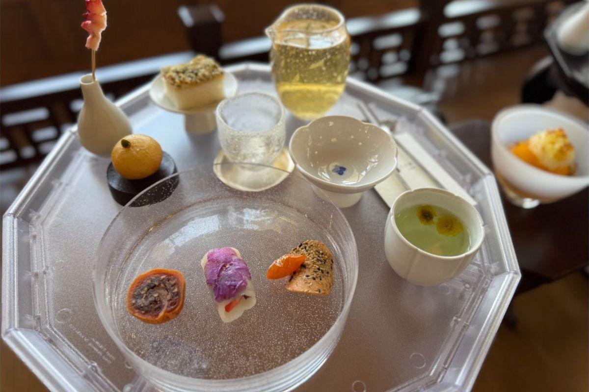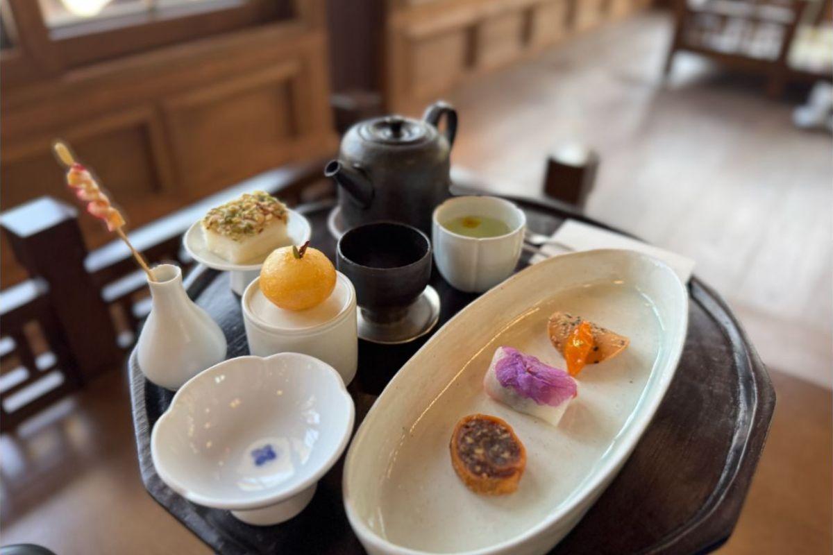茶菓子は一つひとつが丁寧に盛り付けられていて、運ばれてきた瞬間からかなり華やか。