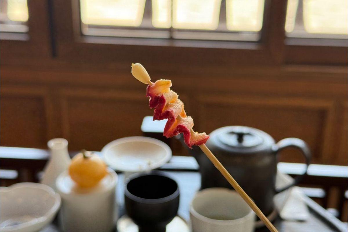さらに、煮詰めたシッケをソースのように使い、柚子の果片や焼いたシッケご飯がトッピングされています。