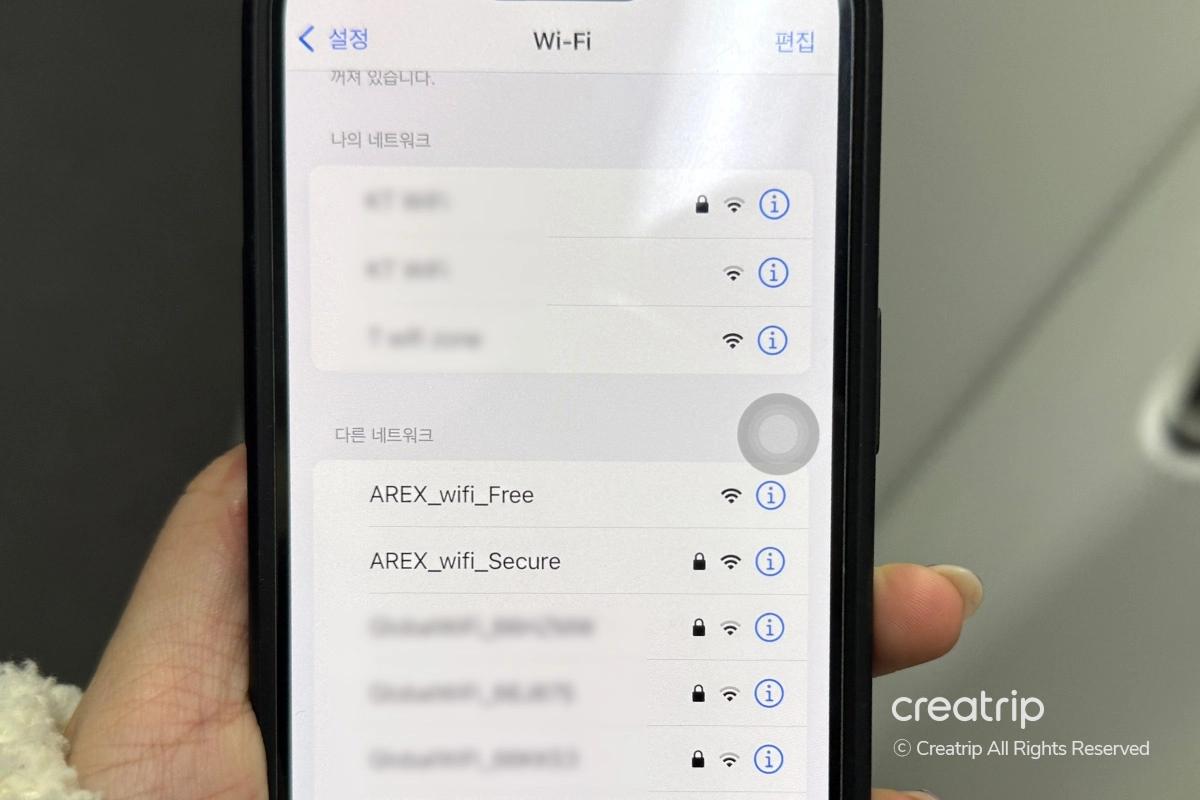Wi-Fiの接続方法も簡単。「AREX_wifi_Free」を選択すると案内ページが表示されるので、ページ下部までスクロールして「free wifi connect」ボタンを押せば接続が完了します。