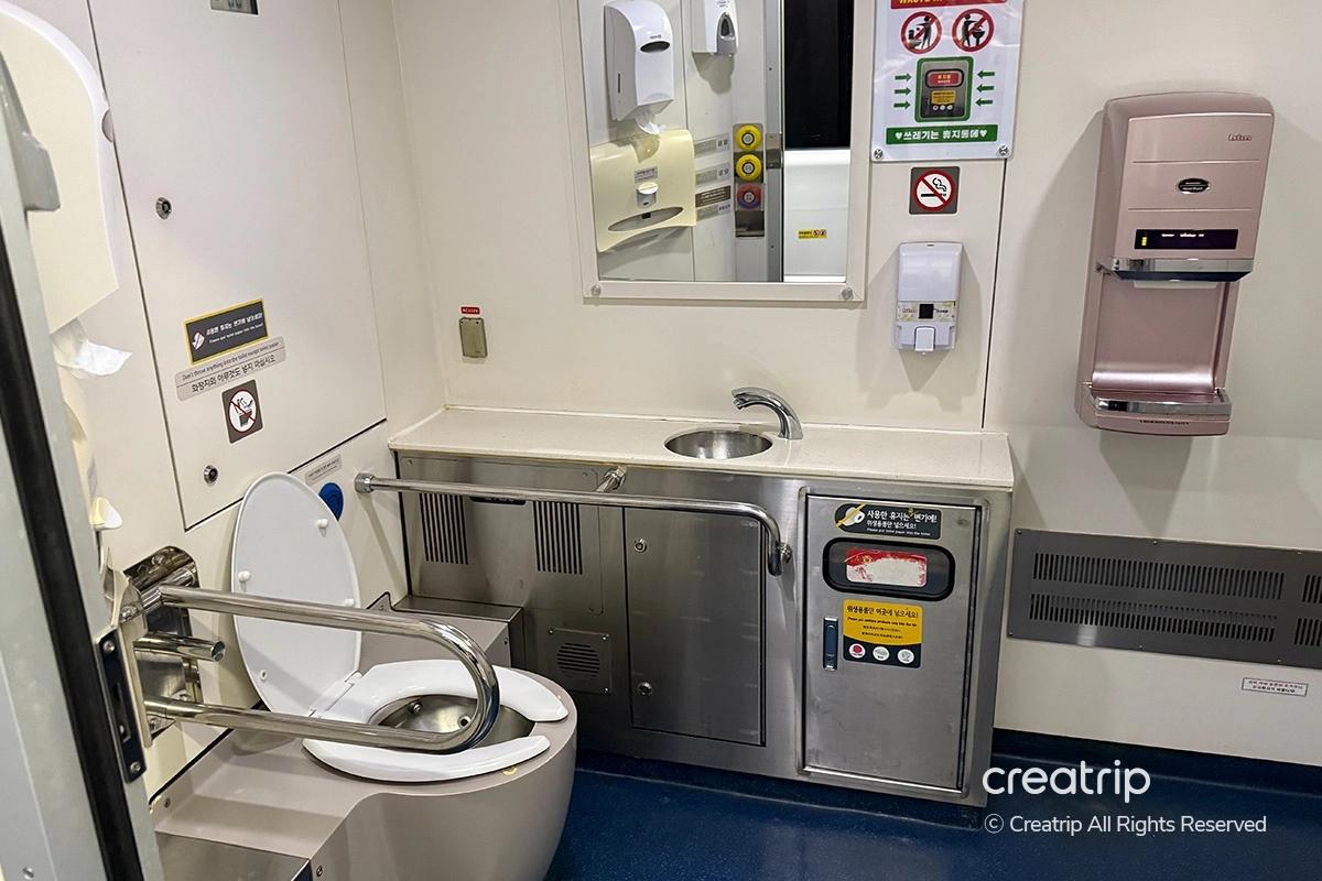 4号車には清潔で広々としたトイレも設置されています。