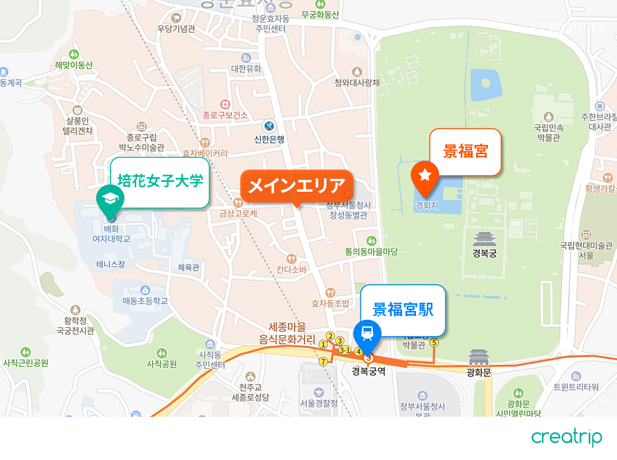 西村へアクセスするには、地下鉄3号線景福宮駅をご利用ください