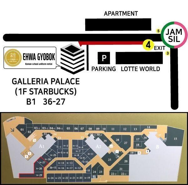 梨花制服(이화교복)は、蚕室ロッテワールド のすぐ隣にある韓国制服レンタル店です。