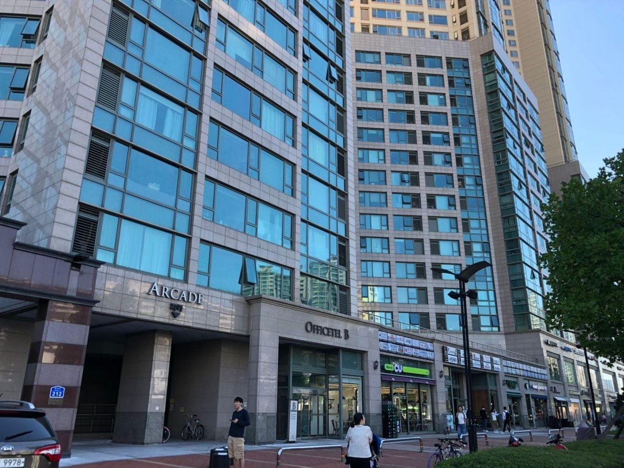 蚕室ロッテビルと駐車場を通り過ぎます。