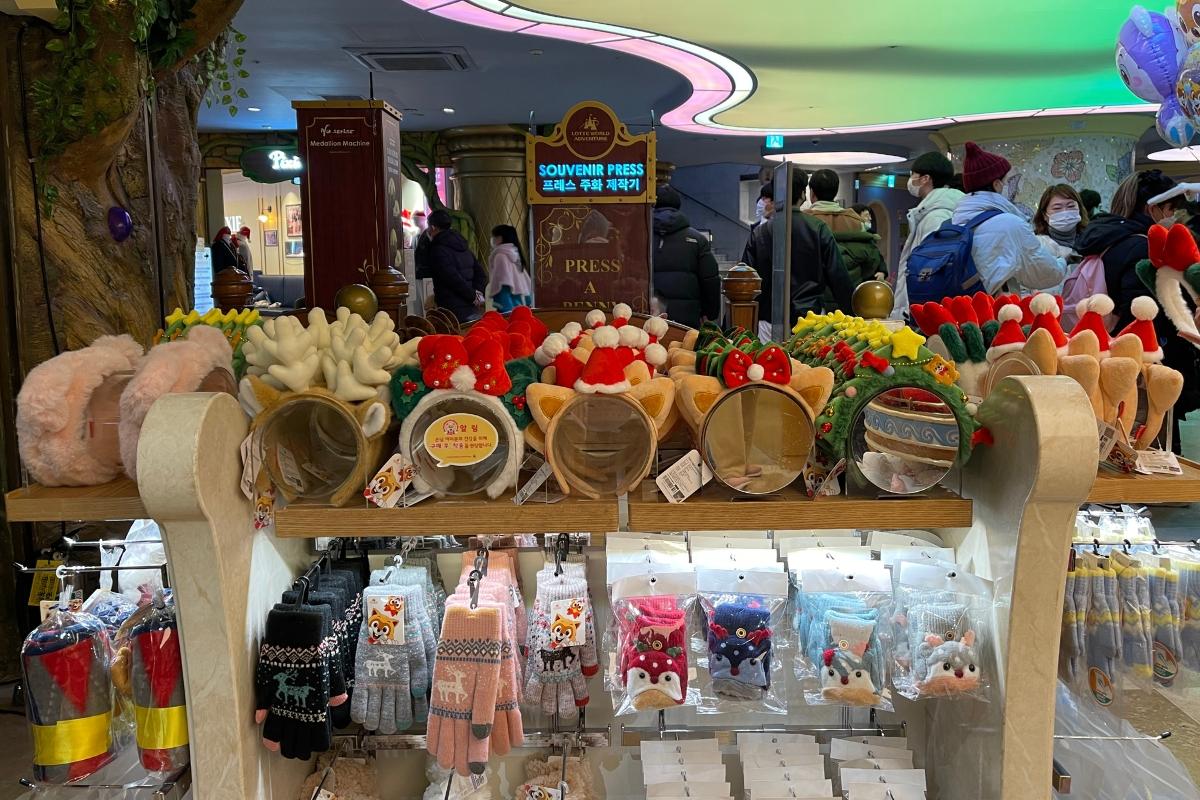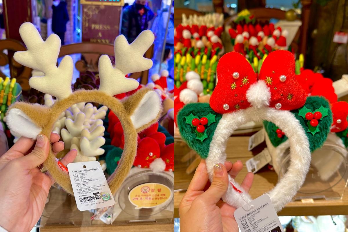 園内のショップにはクリスマスをテーマにしたかわいいグッズがたくさん!到着後すぐにショップへ向かって、カチューシャを購入しました。これで1日中カチューシャをつけてかわいい写真がたくさん撮れます!