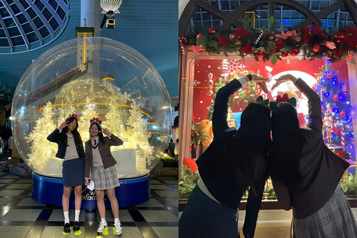 フォトスポットはすべて屋内にあり、梨花制服でレンタルした可愛い制服を着て素敵な写真が撮れました。クリスマスシーズン限定のフォトスポットもお見逃しなく!