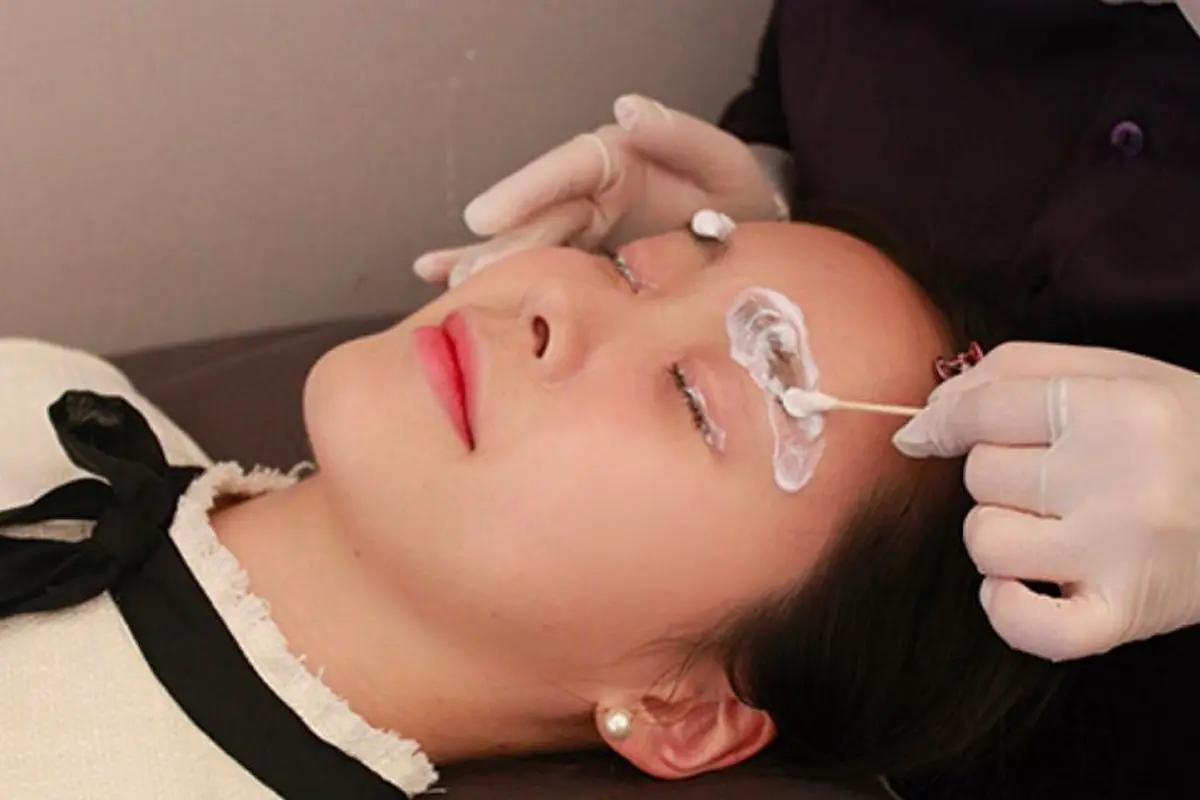 カウンセリングが終わったら、眉毛をきれいに拭き取って麻酔クリームを塗り、20~25分間待機します。